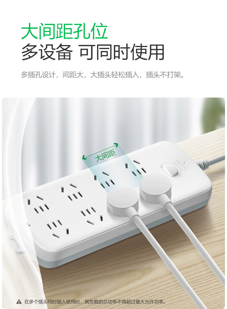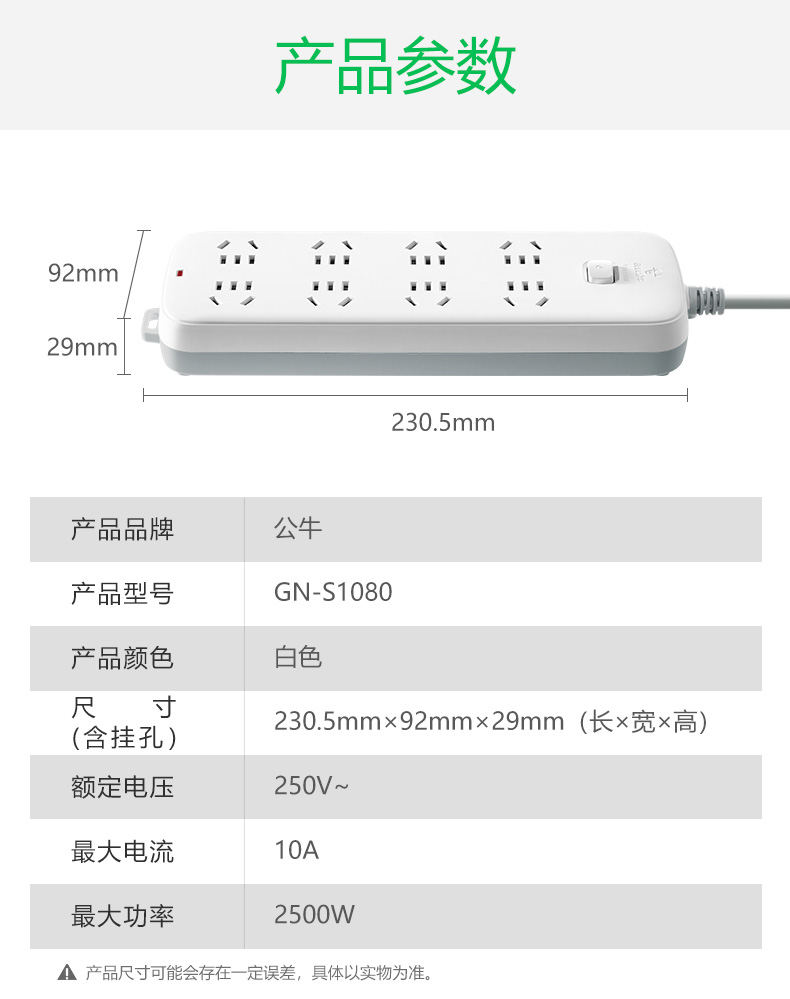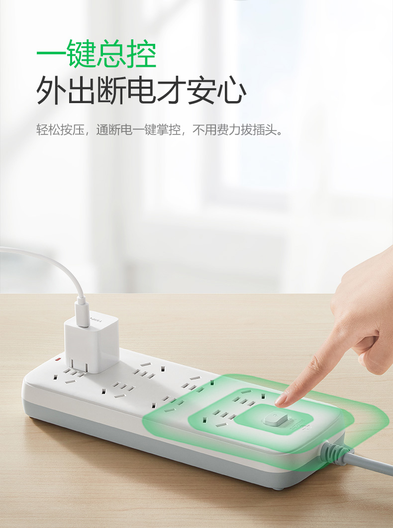 商品名称:(超运·禾贸)公牛(BULL)S1080新国标插座8位总控全长3米 插线板插排排插接线板