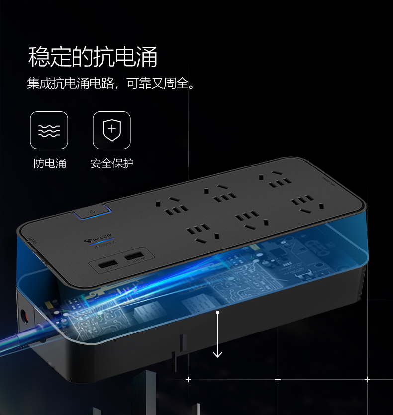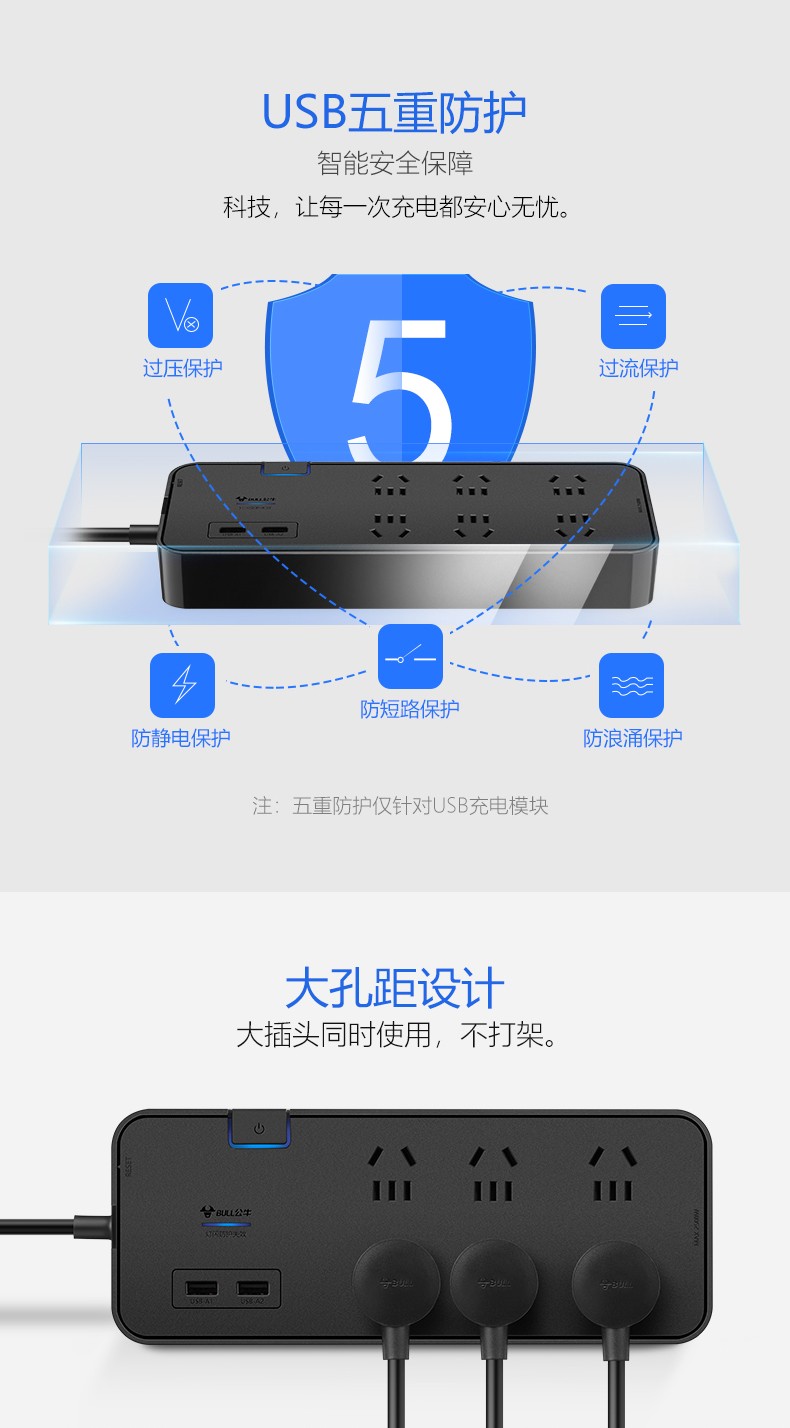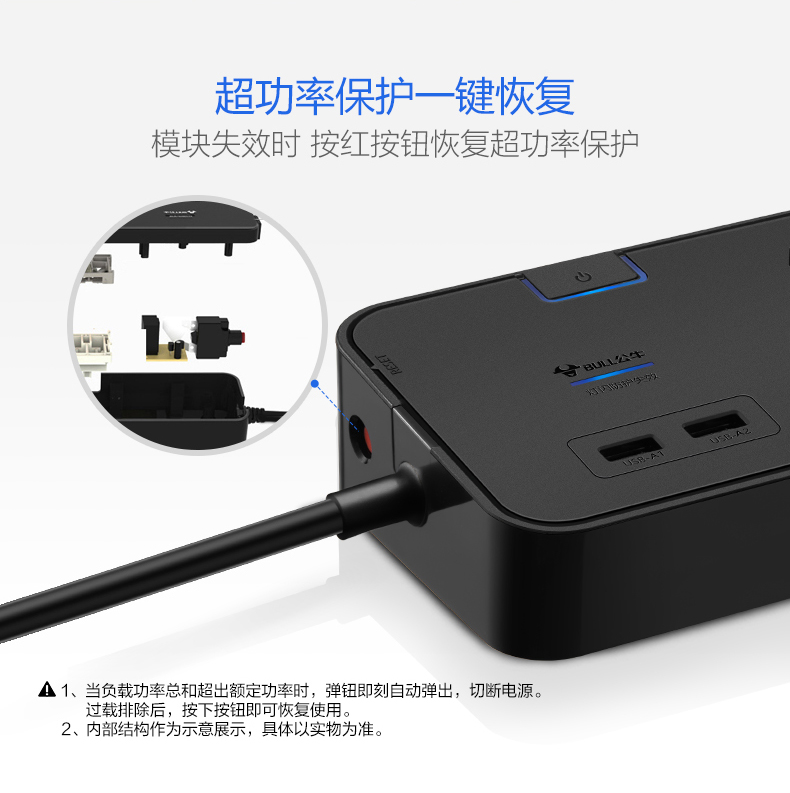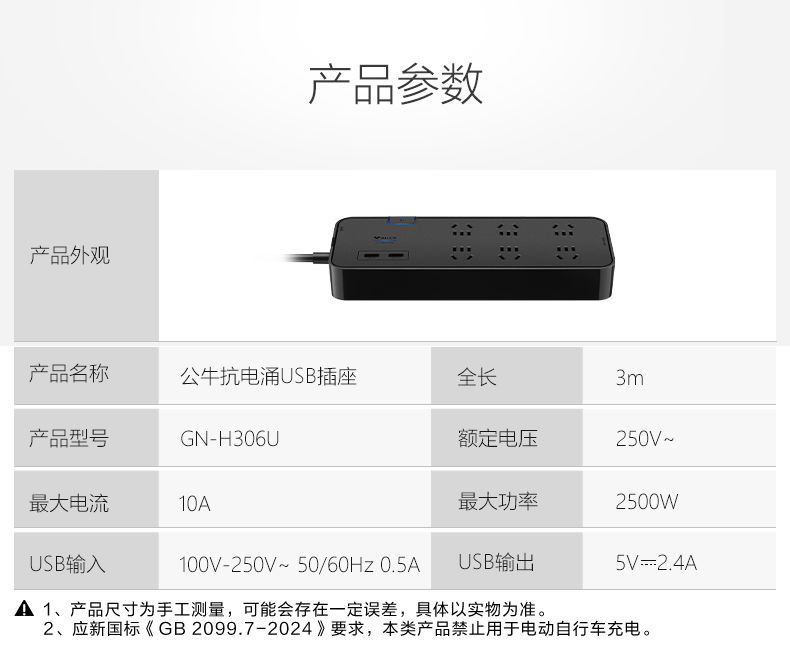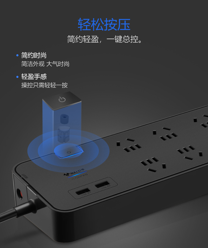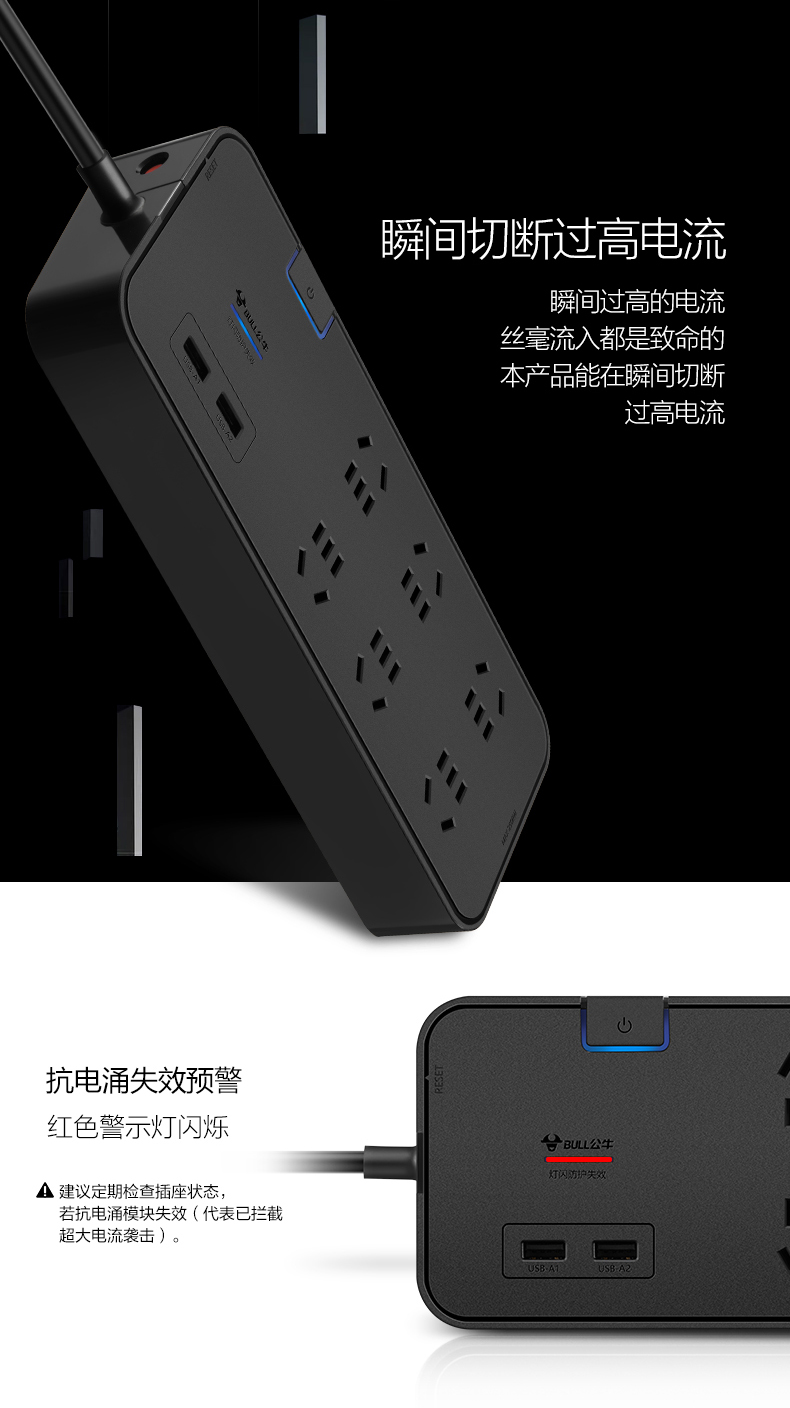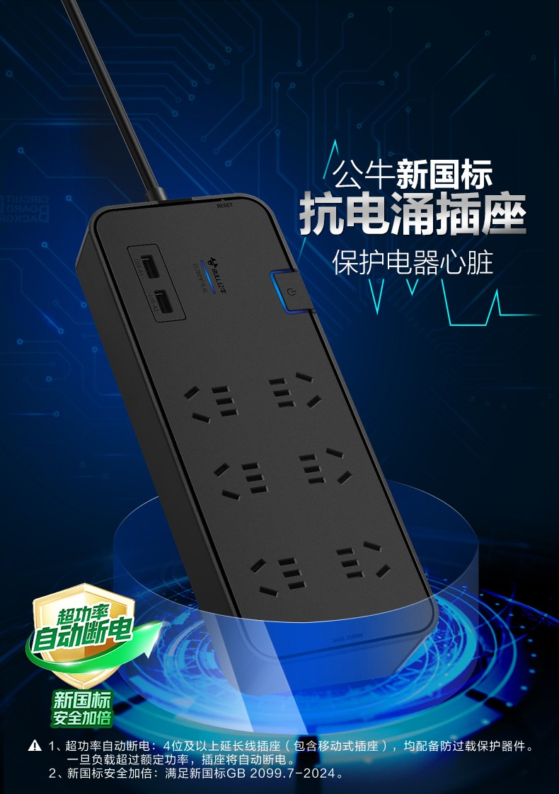 商品名称:(超运·禾贸)公牛(BULL) 抗电涌抗浪涌插座 6位+2USB总控全长3米 保护智能电器GN-H306U 插线板插排排插接线板
