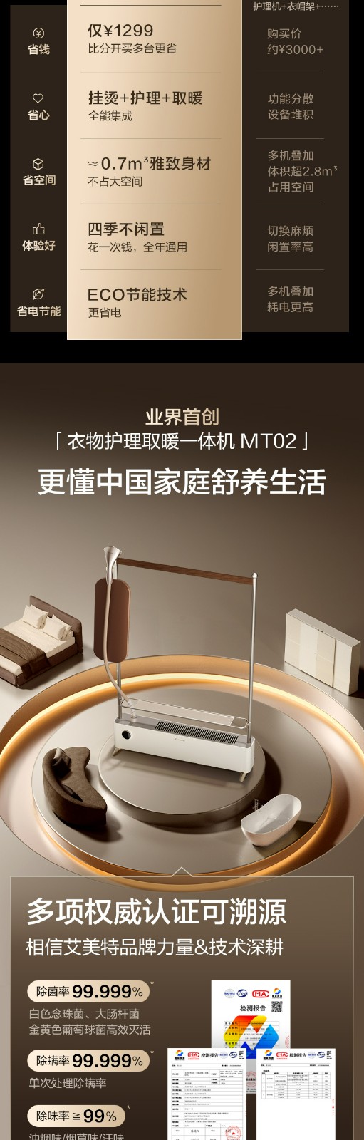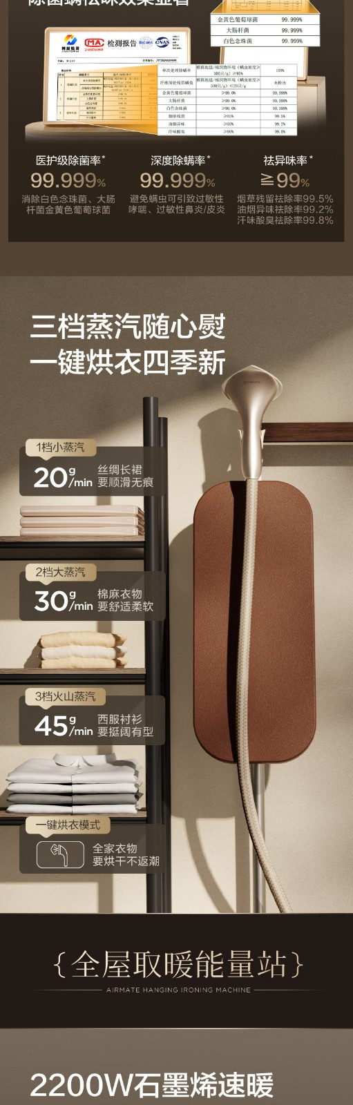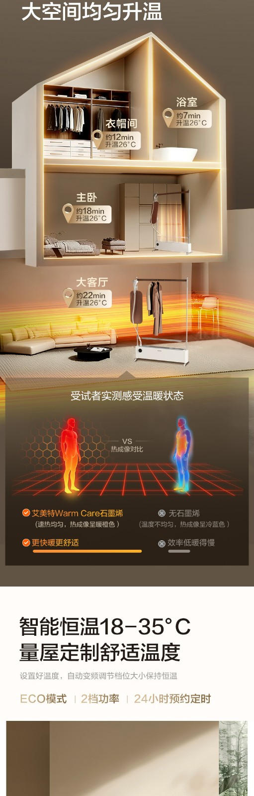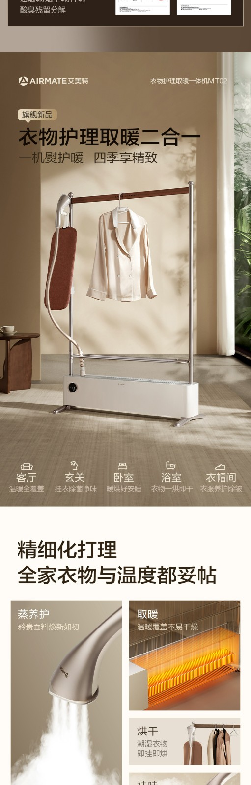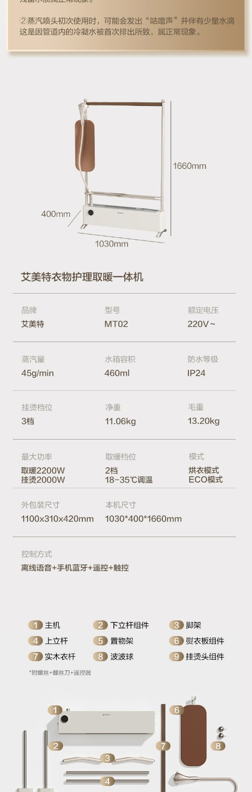 商品名称:(巨邦佑)R+艾美特MT02 【熨暖管家】石墨烯踢脚线取暖器 家用暖风机卧室熨烫机挂烫机 电暖气片 大面积全屋升温电暖器