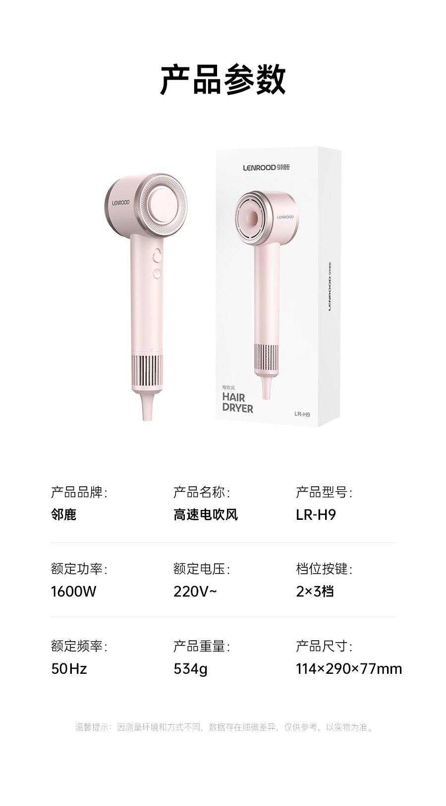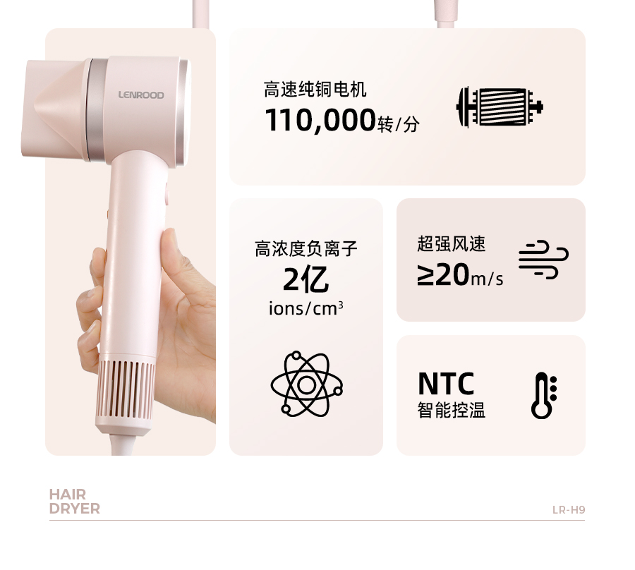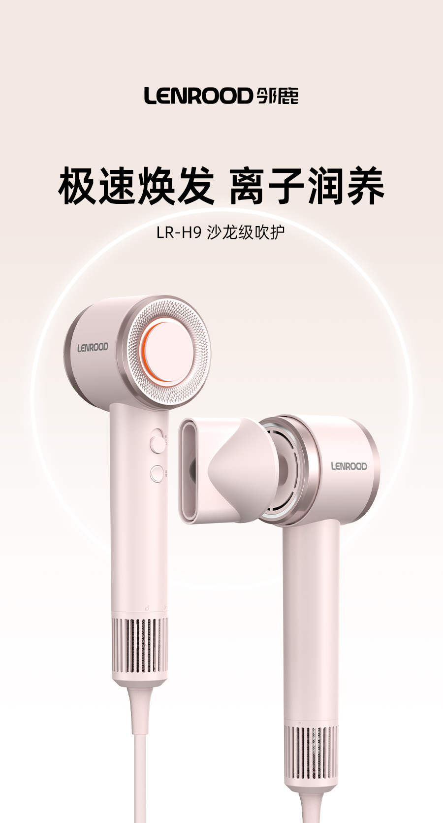 商品名称:(巨邦佑)BJ+邻鹿 高速负离子电吹风机 LR-H9 粉色沙龙级吹护