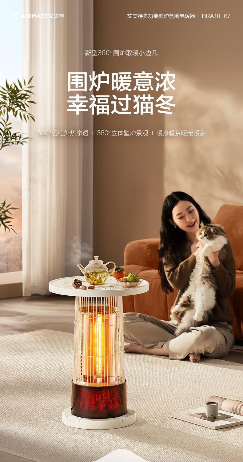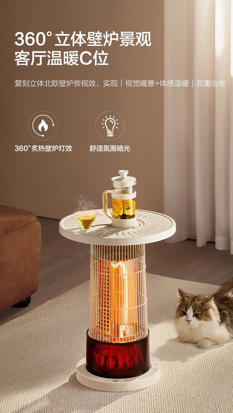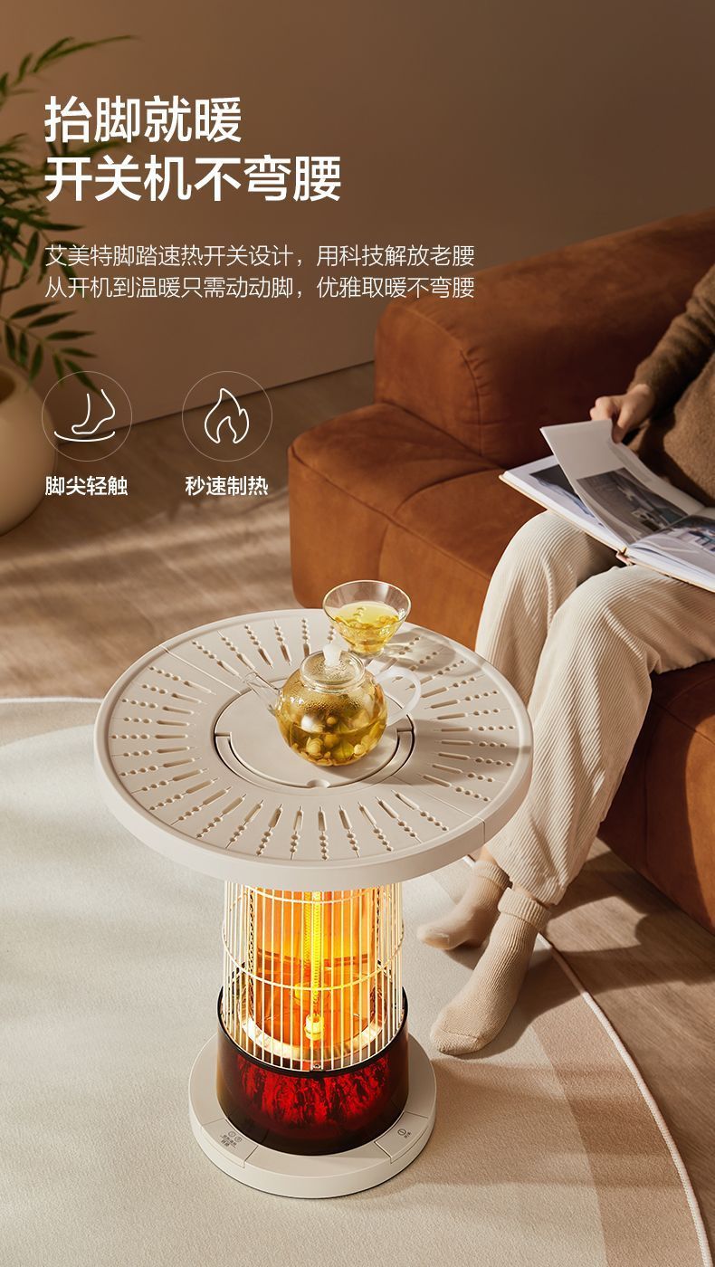 (巨邦佑)T+艾美特围炉煮茶取暖器HRA10-K7家用鸟笼仿火焰烤火炉茶几
