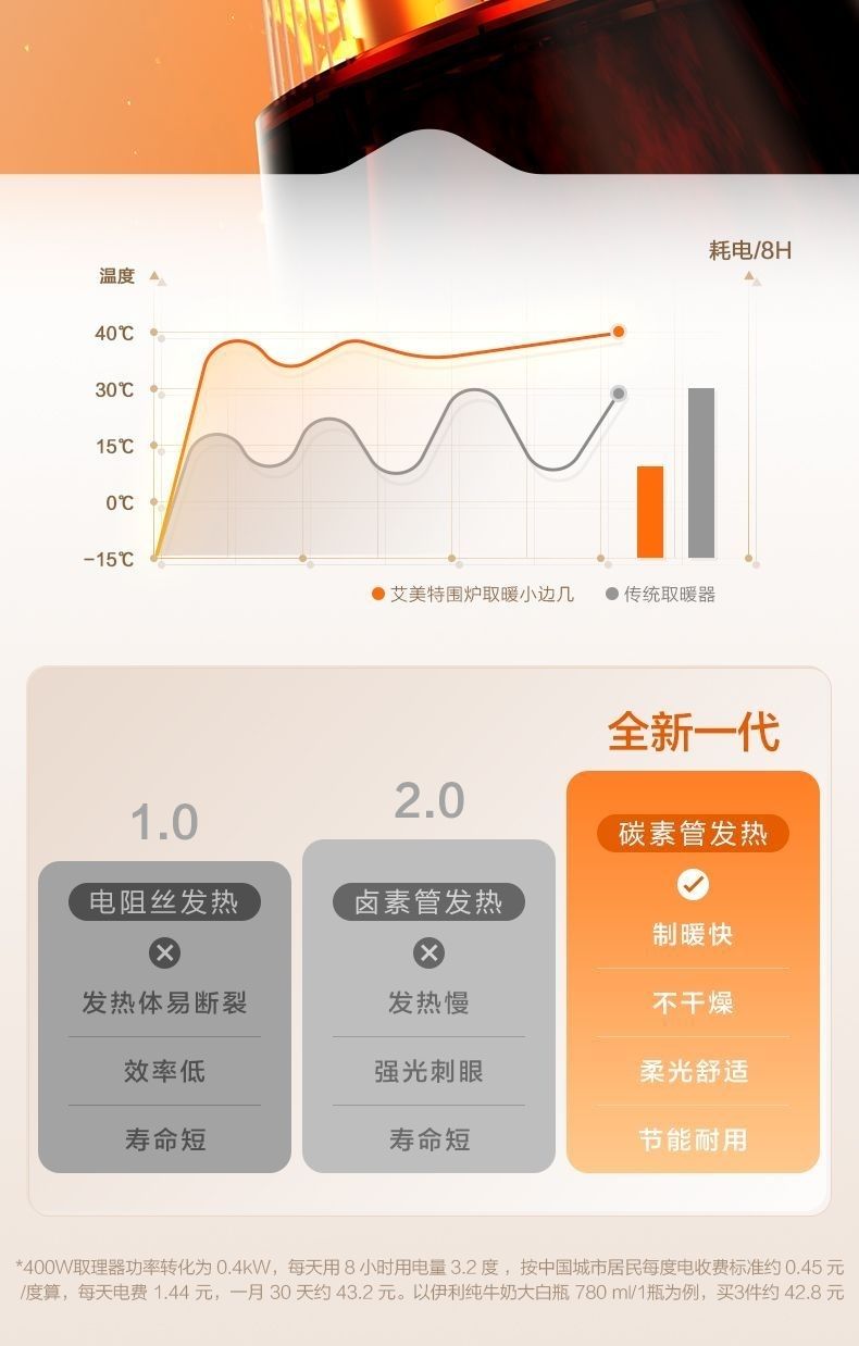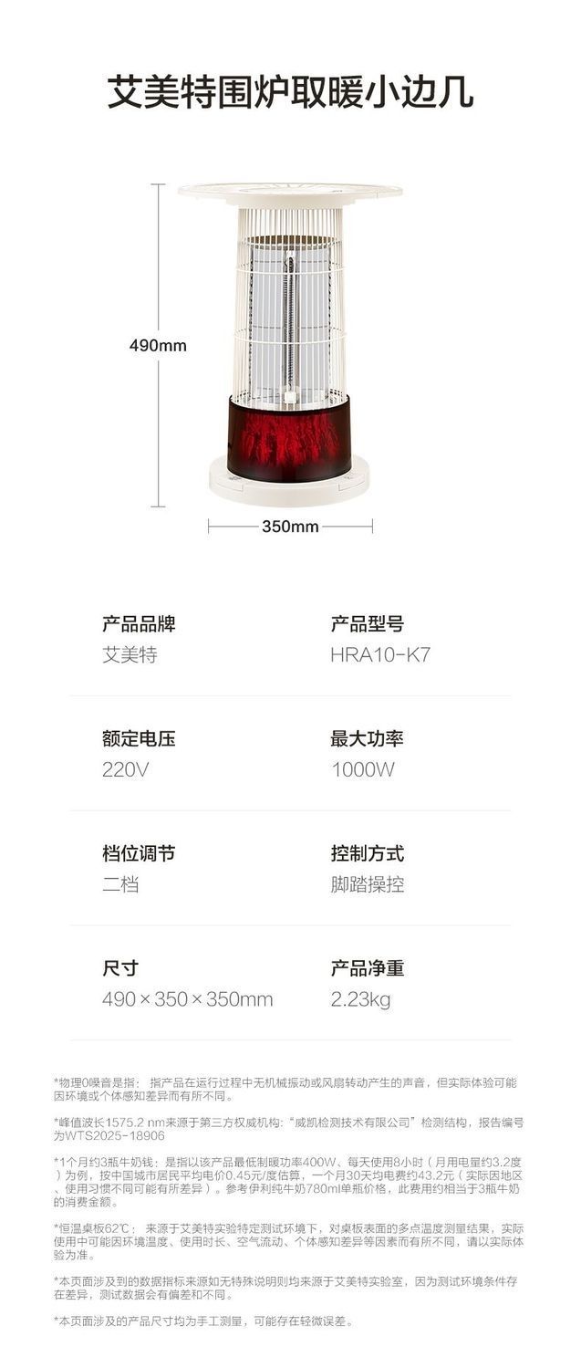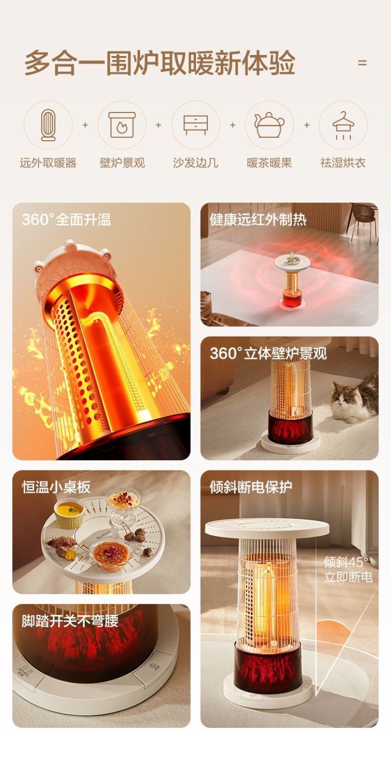 商品名称:(巨邦佑)T+艾美特围炉煮茶取暖器HRA10-K7家用鸟笼仿火焰烤火炉茶几
