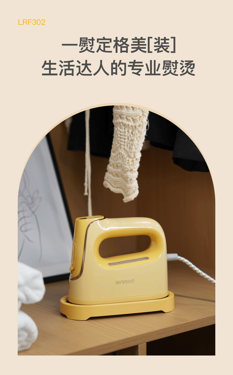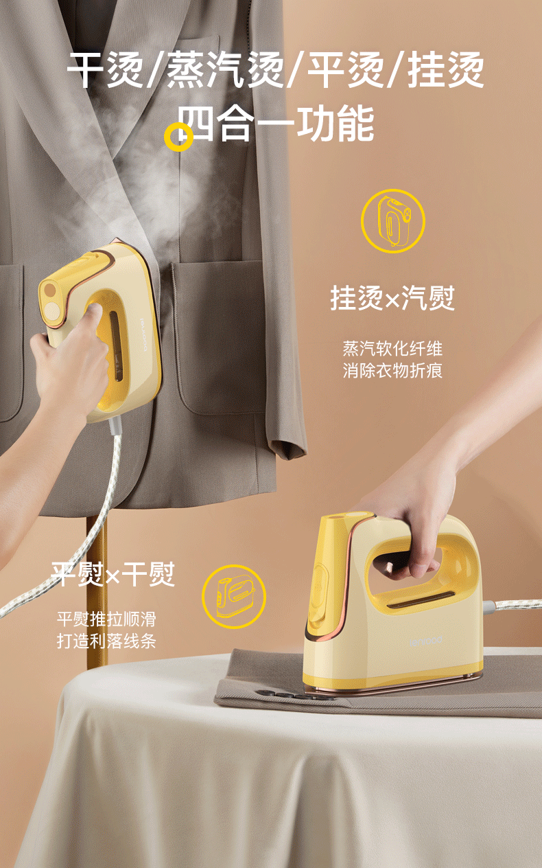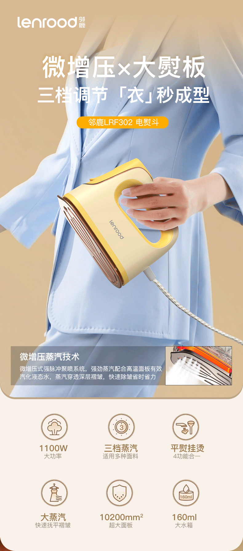 (巨邦佑)BJ+邻鹿 电熨斗 LRF-302 浅黄色 家用小型大功率蒸汽平烫挂烫机干湿两用烫衣服手持