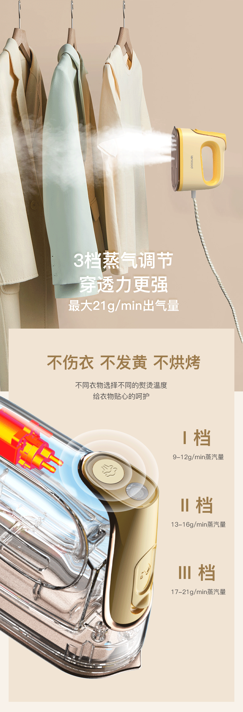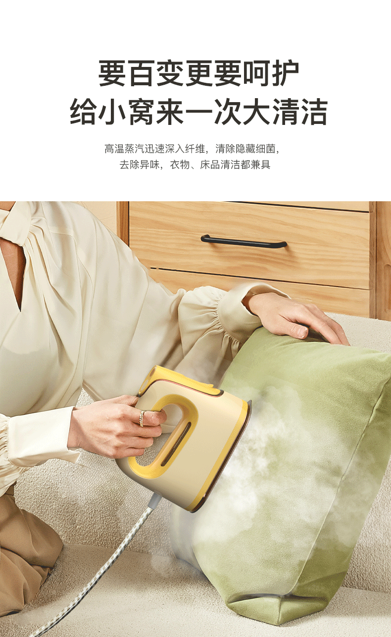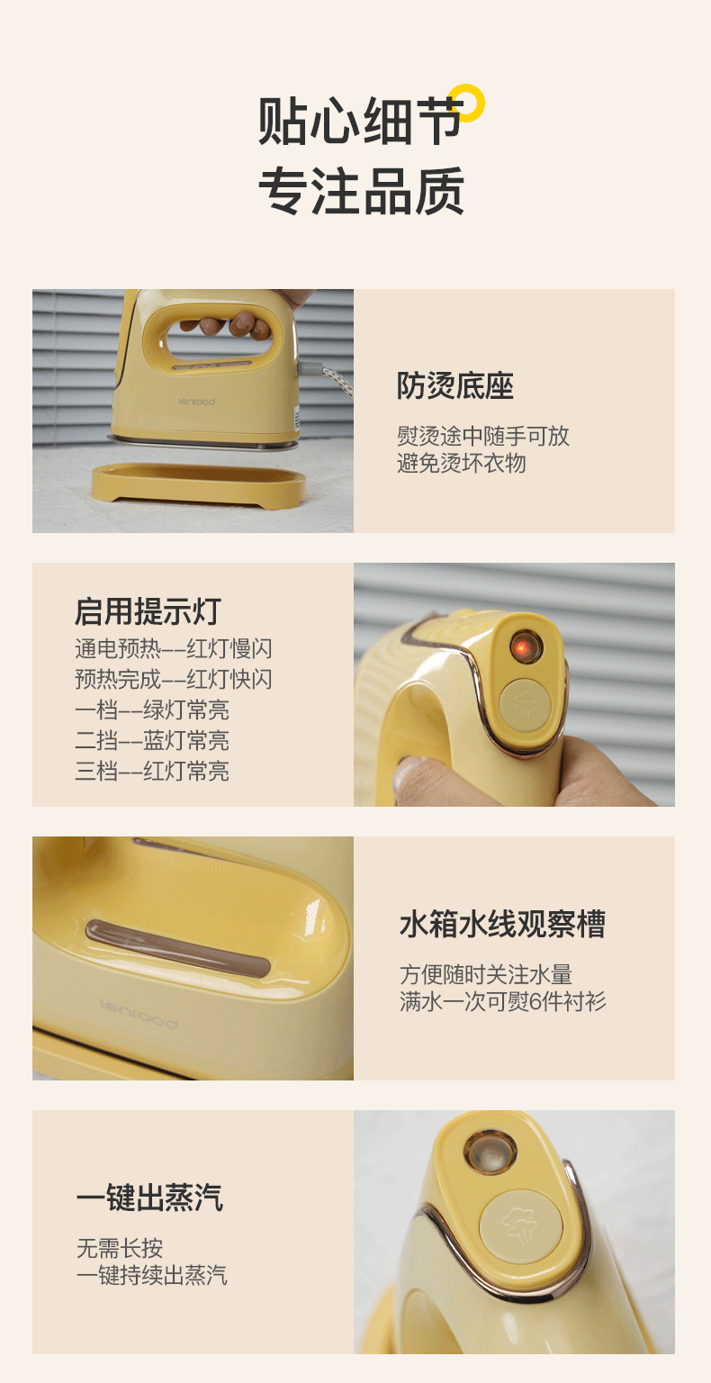 (巨邦佑)BJ+邻鹿 电熨斗 LRF-302 浅黄色 家用小型大功率蒸汽平烫挂烫机干湿两用烫衣服手持