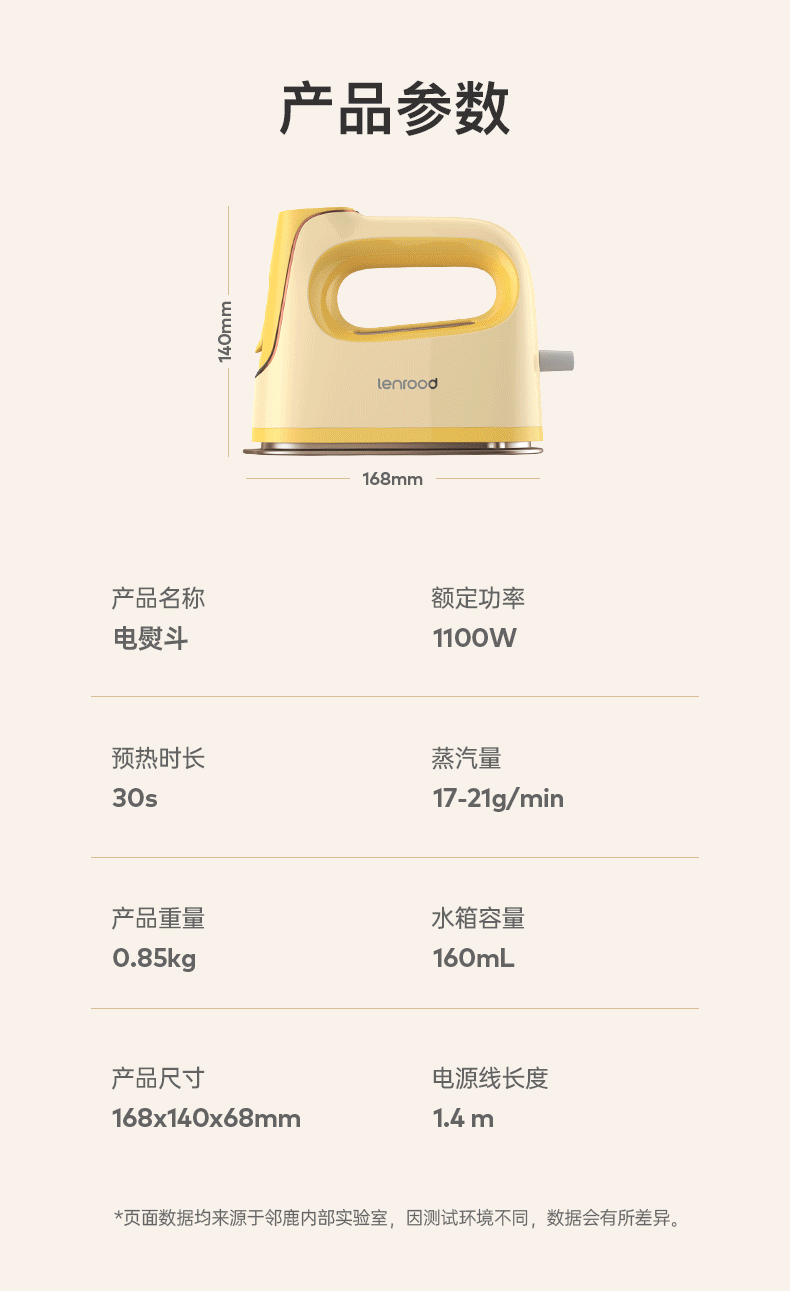 商品名称:(巨邦佑)BJ+邻鹿 电熨斗 LRF-302 浅黄色 家用小型大功率蒸汽平烫挂烫机干湿两用烫衣服手持