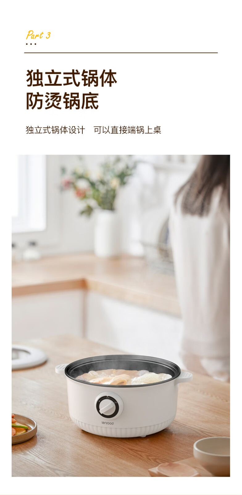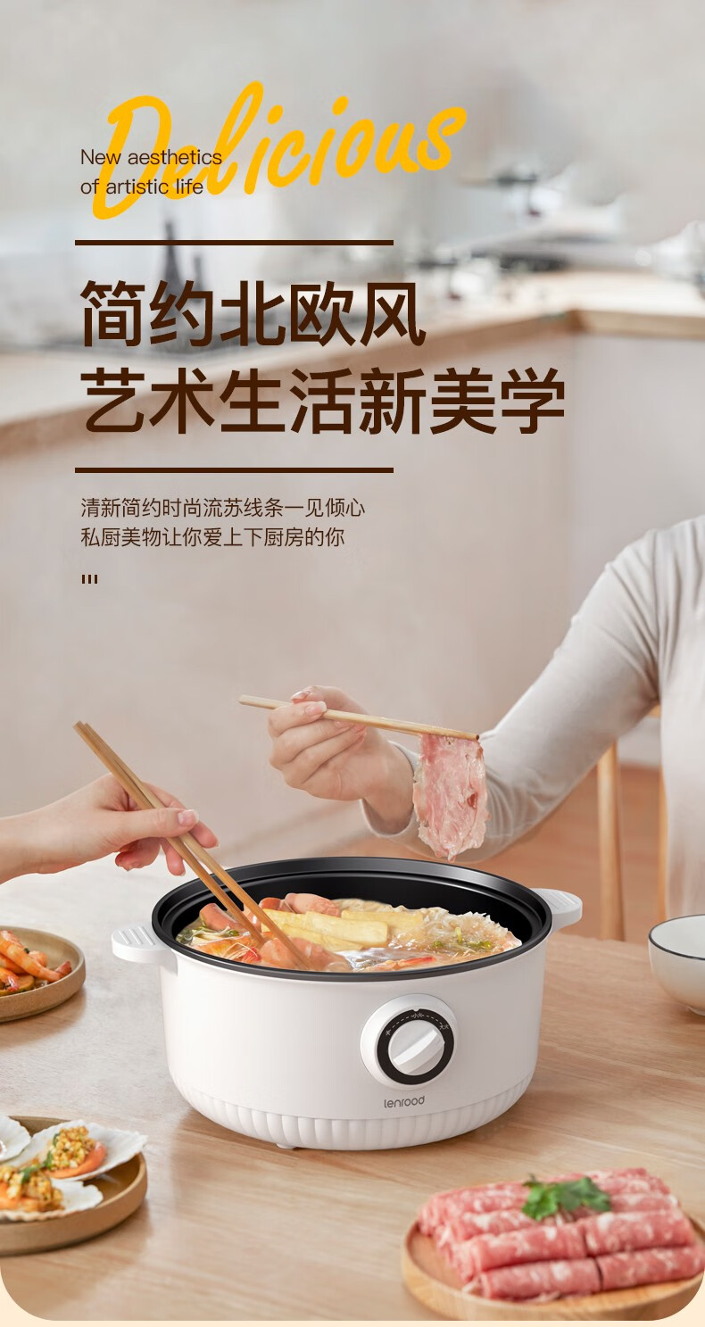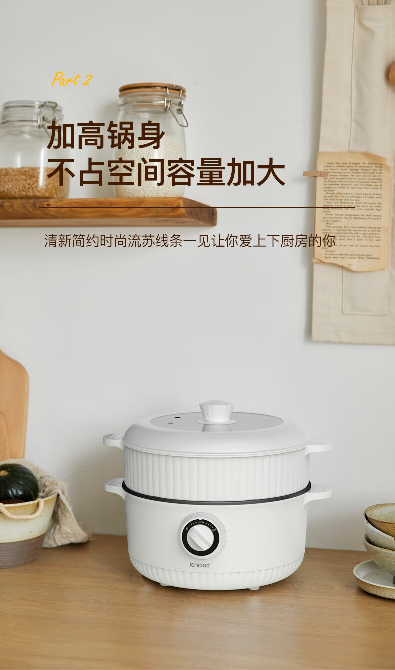 (巨邦佑)BJ+邻鹿 电火锅(带蒸笼) 3L LR-007小电锅电煮锅多功能家用宿舍煮面锅小火锅多用途锅