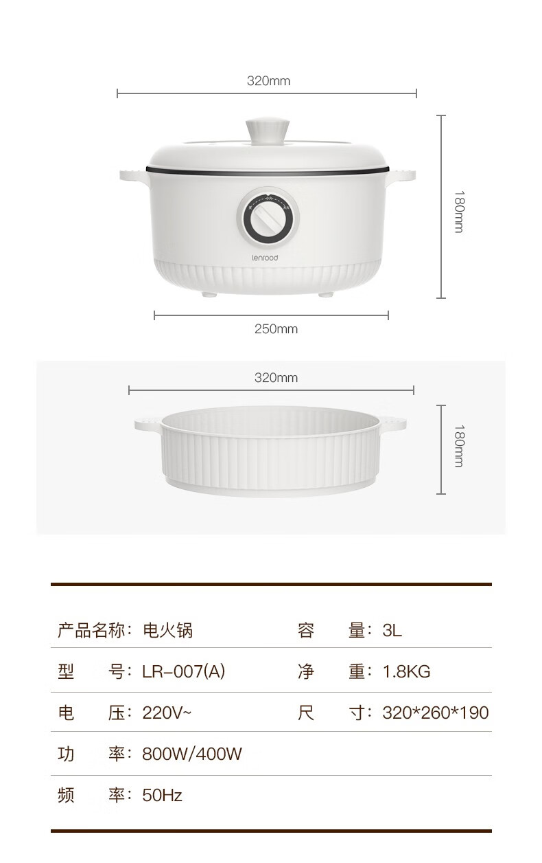 商品名称:(巨邦佑)BJ+邻鹿 电火锅(带蒸笼) 3L LR-007小电锅电煮锅多功能家用宿舍煮面锅小火锅多用途锅