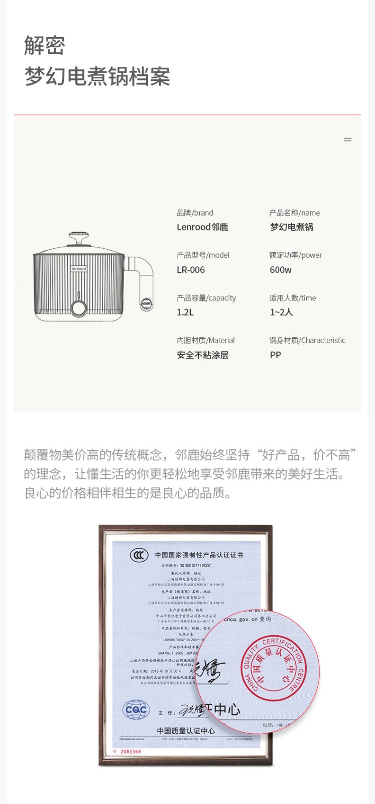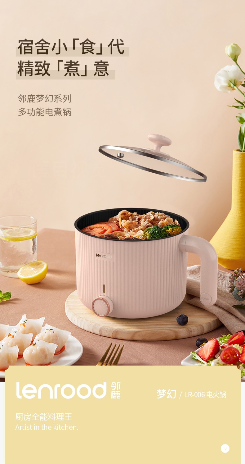 商品名称:(巨邦佑)BJ+邻鹿 电煮锅 1.5L LR-006 小电锅宿舍锅多功能煮面多用途锅多功能学生锅