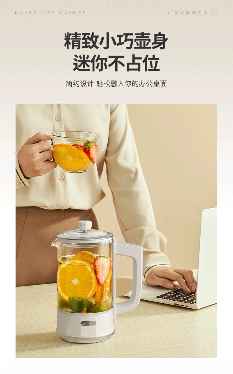 (巨邦佑)BJ+邻鹿 迷你养生壶 0.6L LR-028(A) 家用多功能mini办公室小型花茶煮茶壶一体炖煮