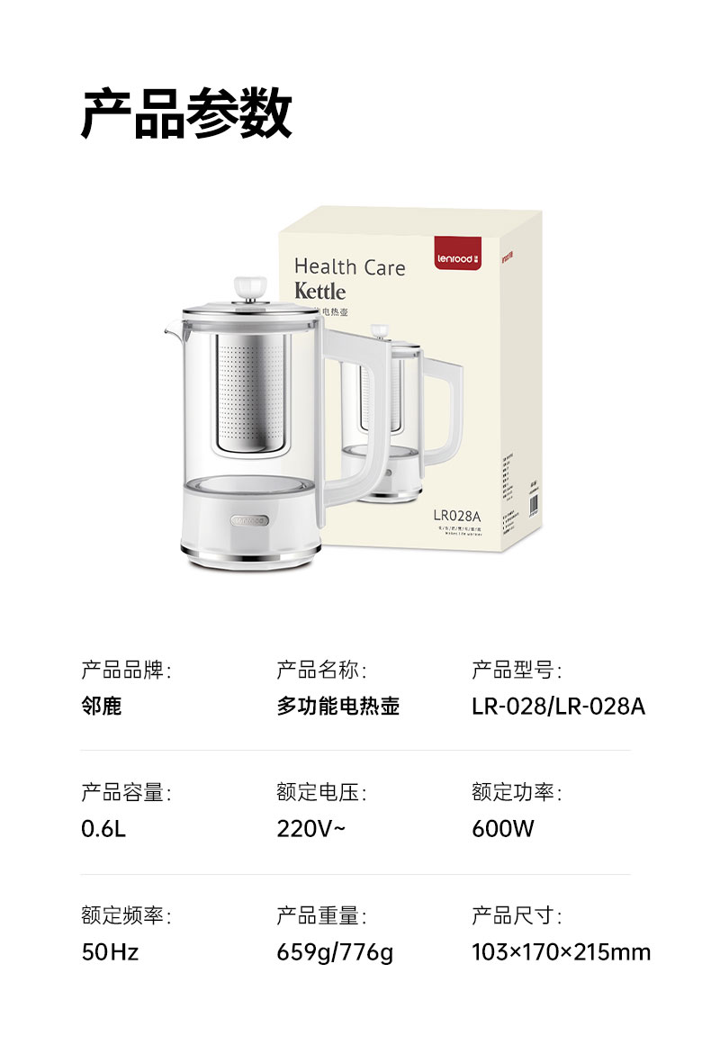 商品名称:(巨邦佑)BJ+邻鹿 迷你养生壶 0.6L LR-028(A) 家用多功能mini办公室小型花茶煮茶壶一体炖煮