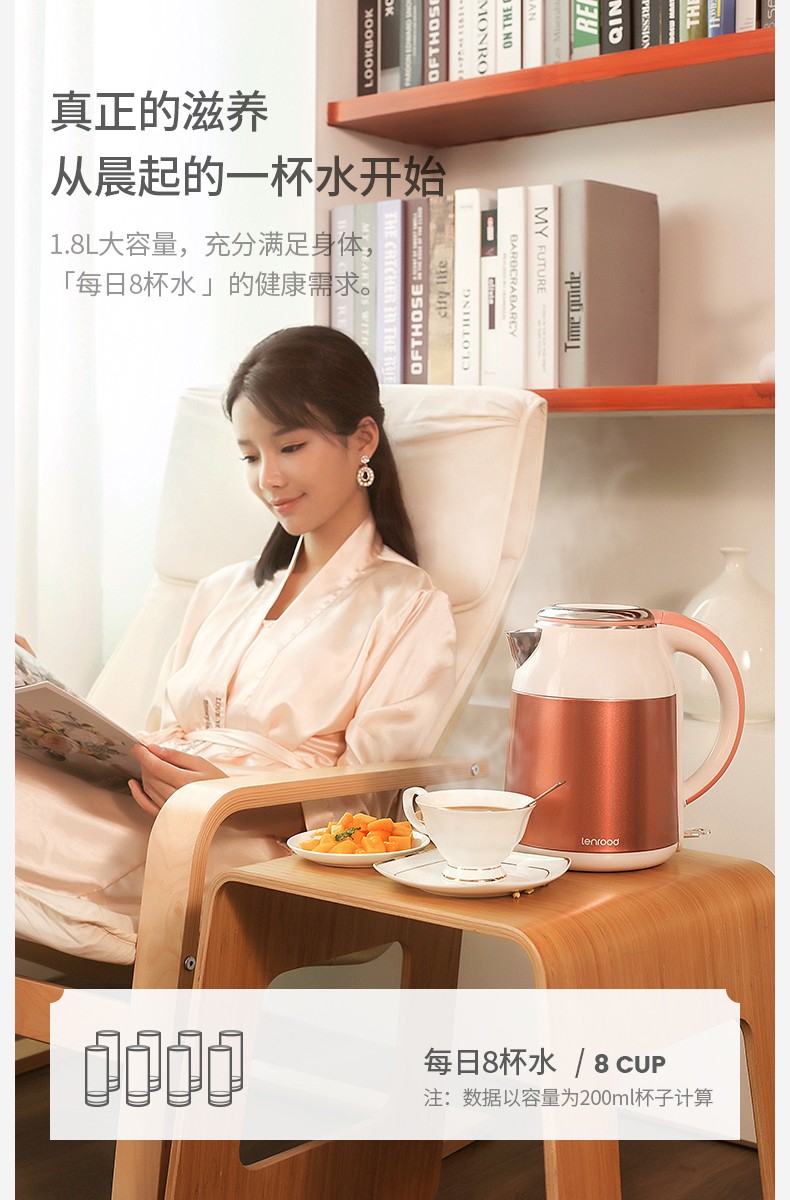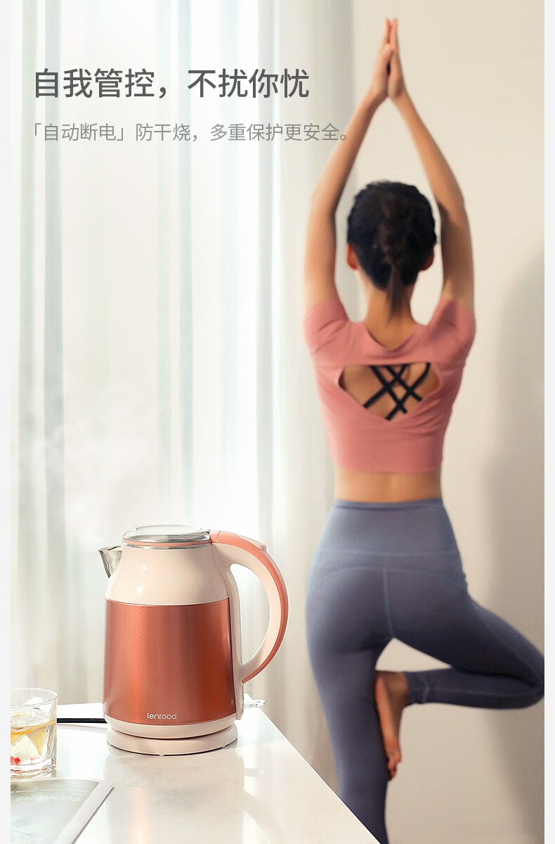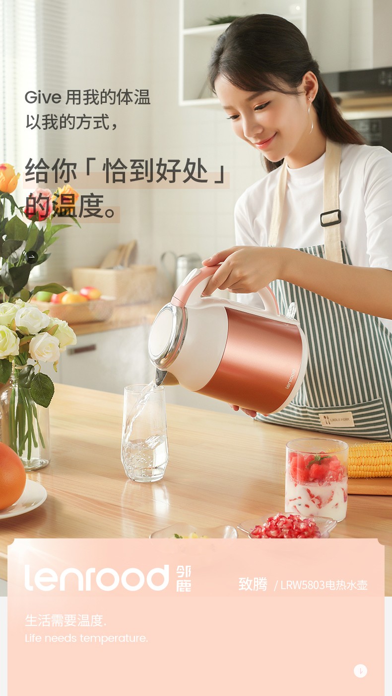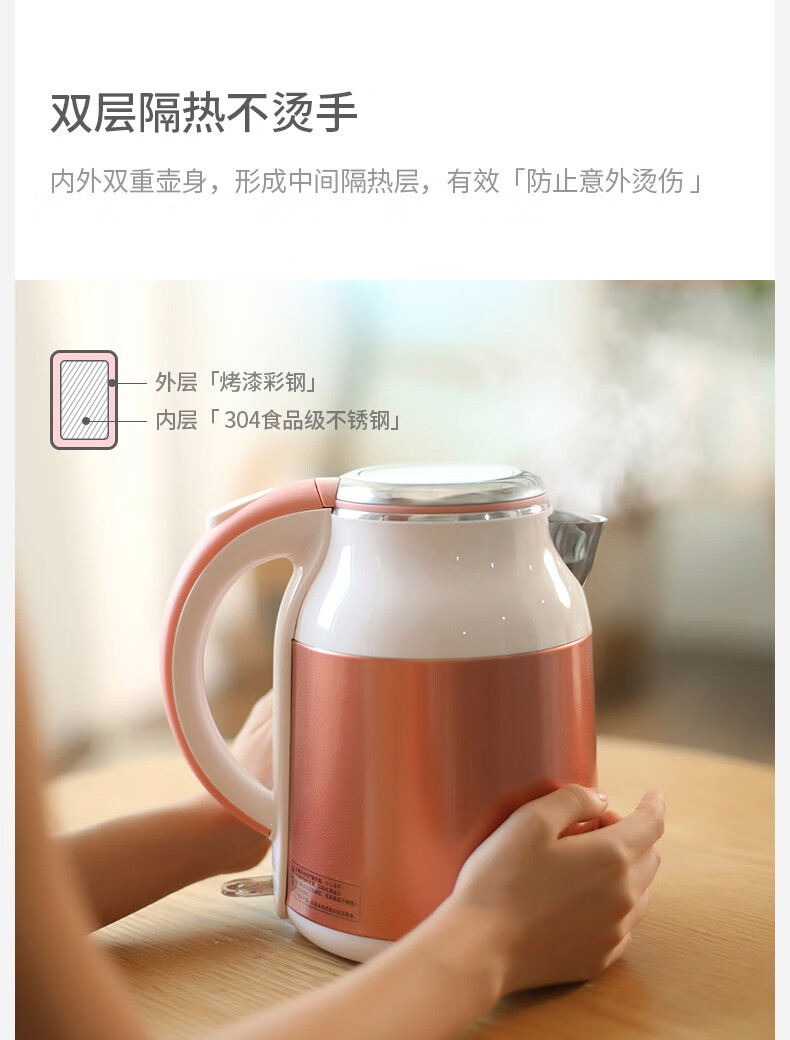 (巨邦佑)BJ+邻鹿 彩钢双层防烫热水壶 LRW5803 1.8L 烧水壶大容量304不锈钢煮水保温家用