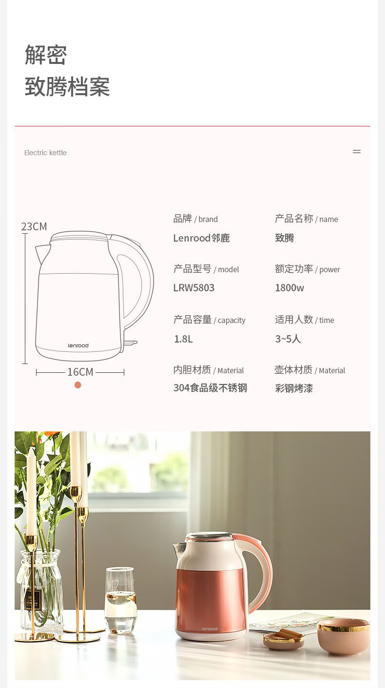 商品名称:(巨邦佑)BJ+邻鹿 彩钢双层防烫热水壶 LRW5803 1.8L 烧水壶大容量304不锈钢煮水保温家用