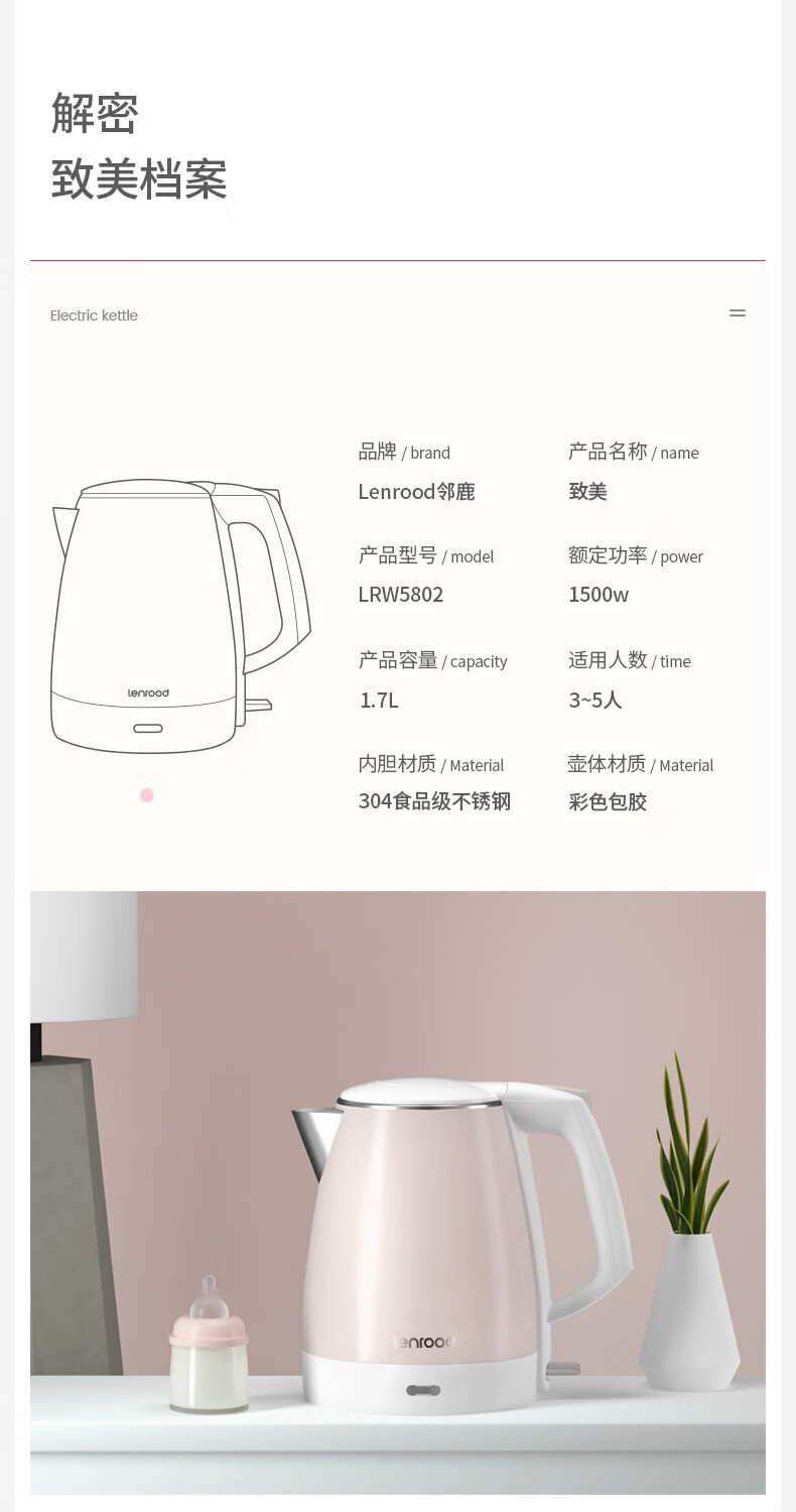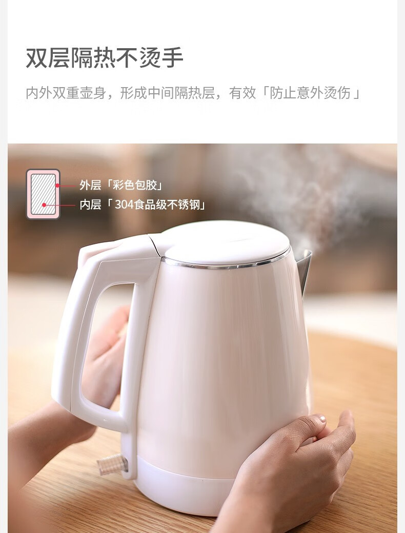 商品名称:(巨邦佑)BJ+邻鹿 双层包胶防烫热水壶 1.7L LRW802家用恒温烧水壶保温开水壶不锈钢防烫