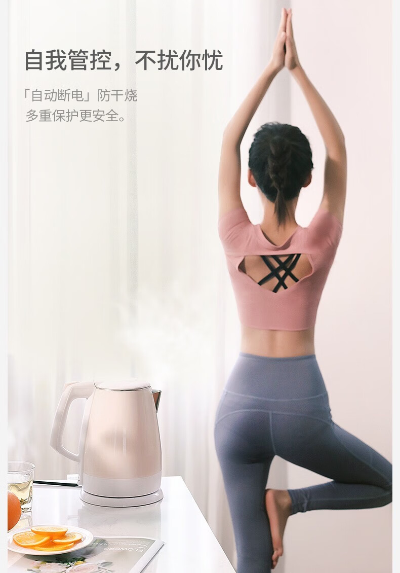 (巨邦佑)BJ+邻鹿 双层包胶防烫热水壶 1.7L LRW802家用恒温烧水壶保温开水壶不锈钢防烫