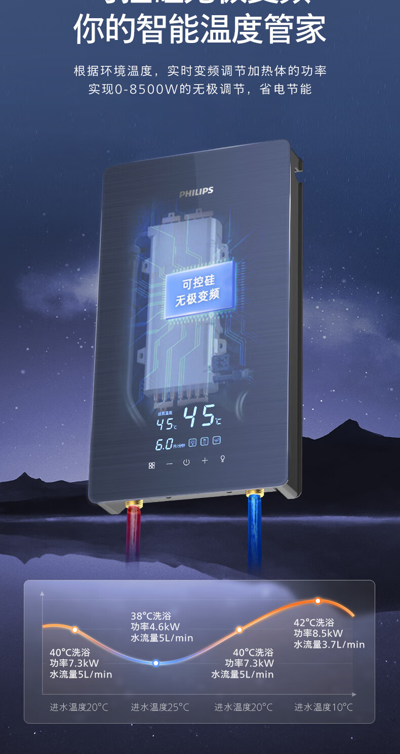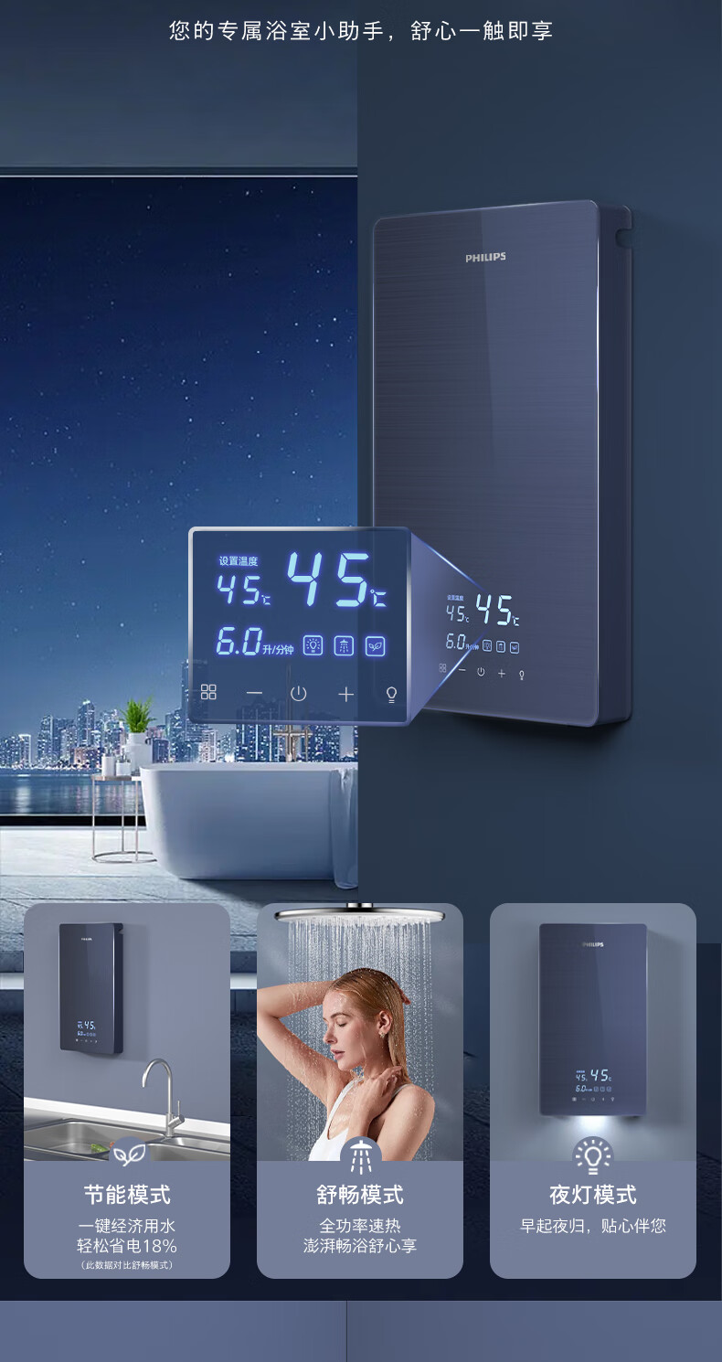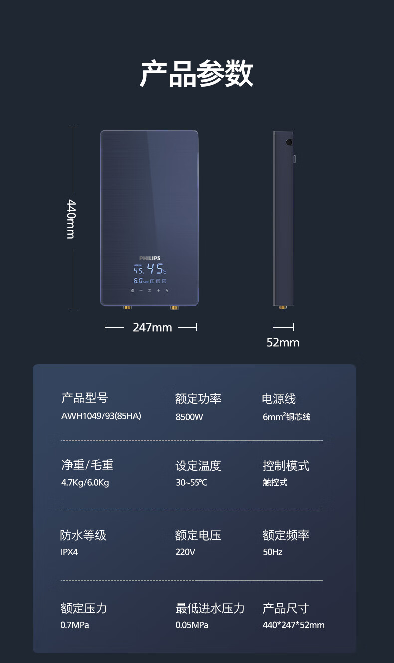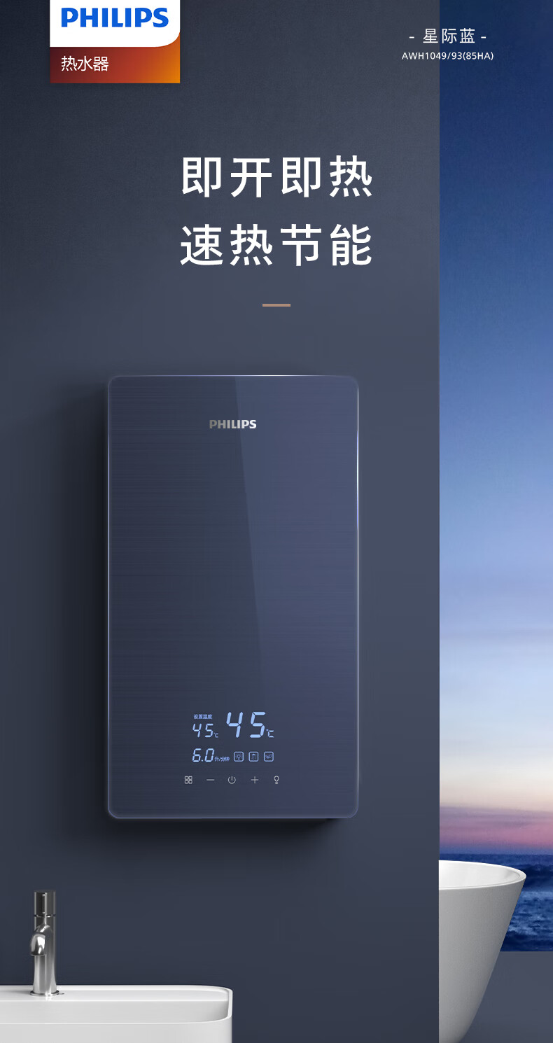 商品名称:(巨邦佑)BJ+飞利浦 即热式电热水器 AWH1049-93 速热小厨宝家用卫生间省电小巧轻薄变频恒温淋浴洗澡免储水变频节能活水健康