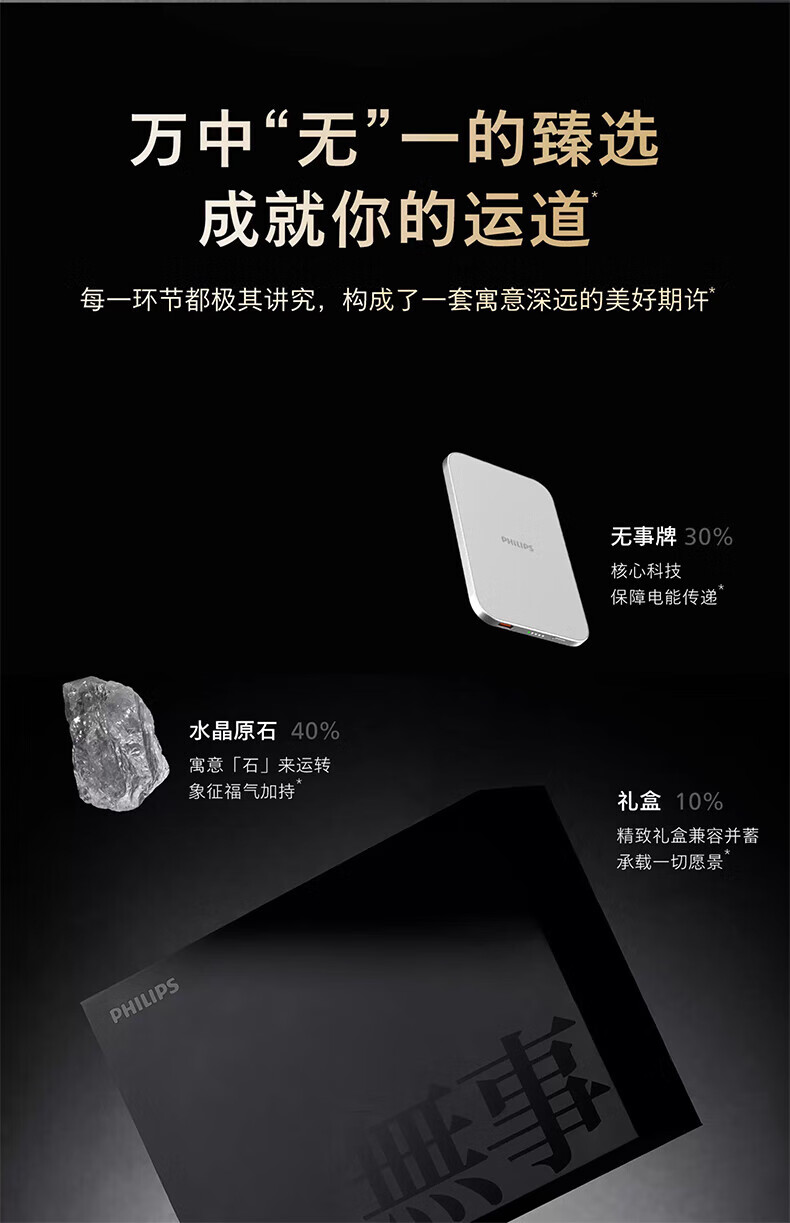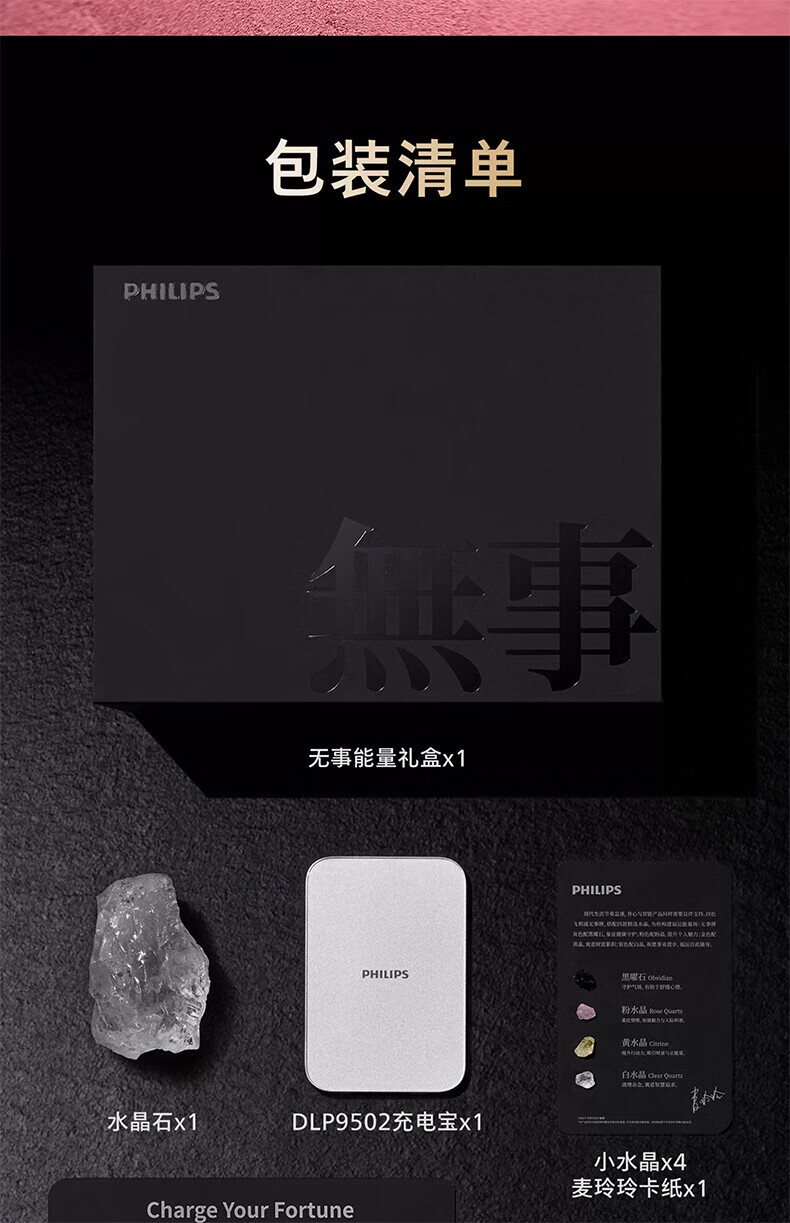 商品名称:(巨邦佑)BJ+飞利浦 磁吸无事充电宝礼盒套装 3C认证无事能量盒 专用送礼水晶原石礼盒 移动电源无线快充超薄小巧便携提升运势