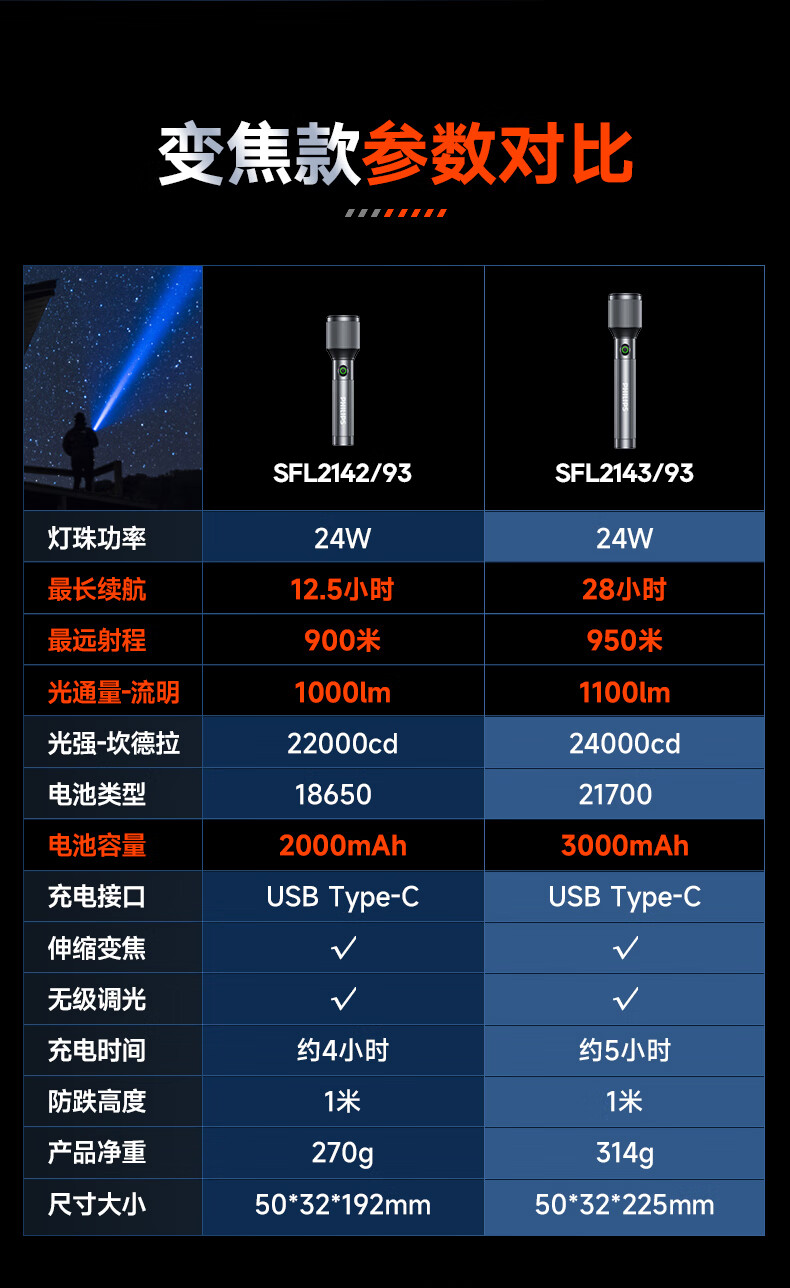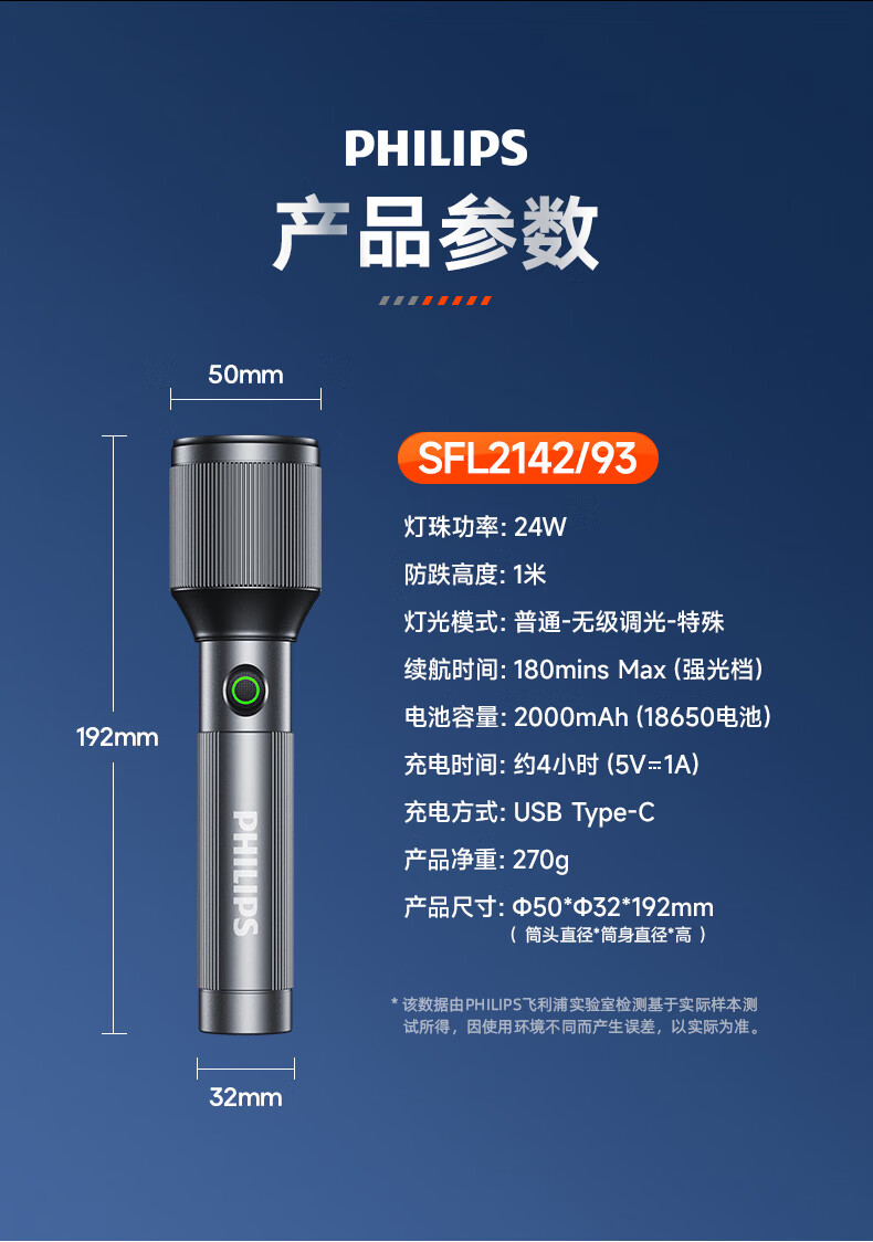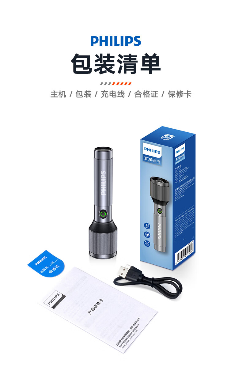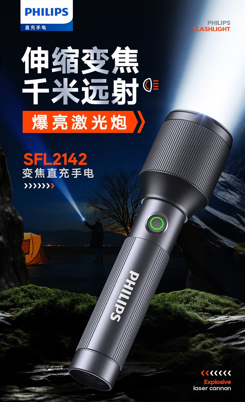 商品名称:(巨邦佑)BJ+飞利浦 手电筒 SFL2142 强光可充电式户外超亮远射小型迷你便携家用耐用氙气led灯