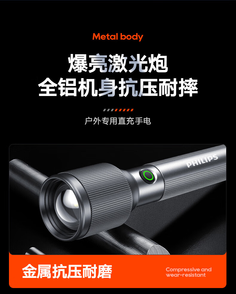 (巨邦佑)BJ+飞利浦 手电筒 SFL2142 强光可充电式户外超亮远射小型迷你便携家用耐用氙气led灯