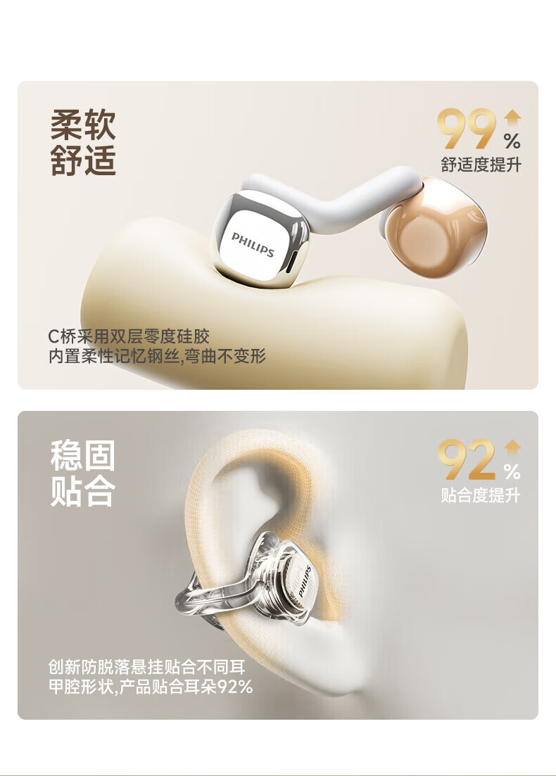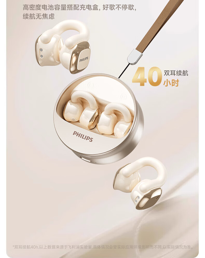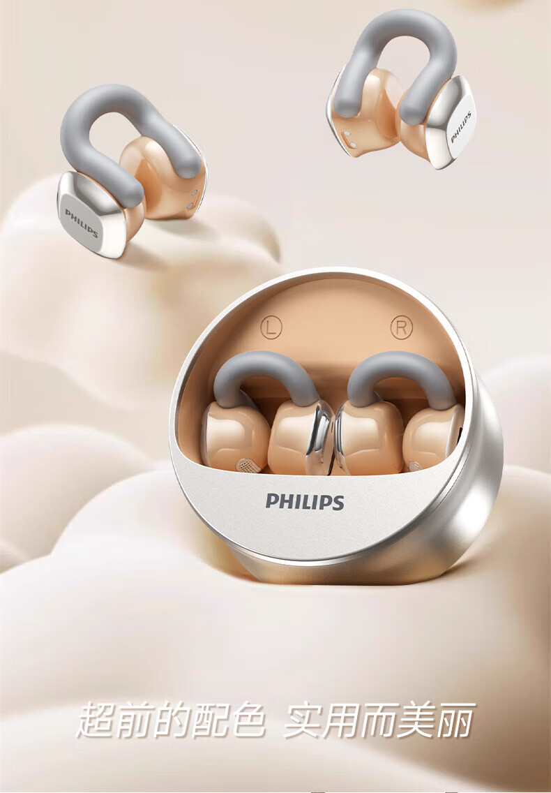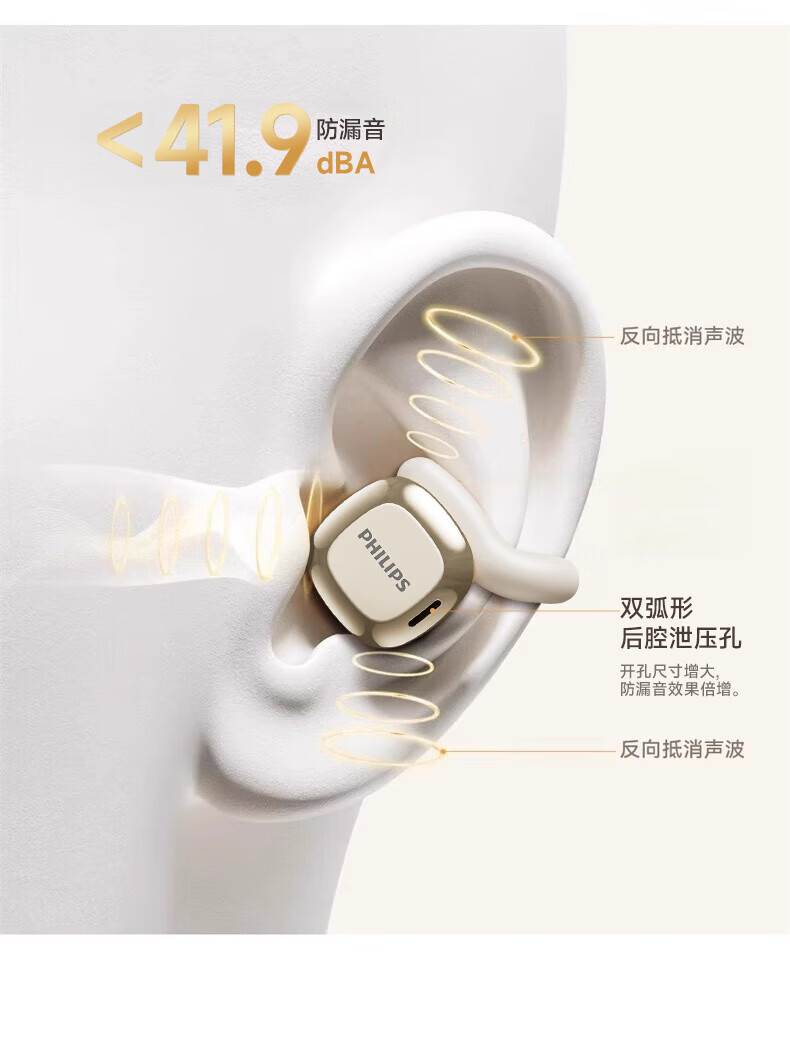 (巨邦佑)BJ+飞利浦 耳机 TAQ4220 耳夹式真无线开放挂耳式骨传导概念不入耳运动跑步通话降噪适用于华为苹果 柔软佩戴智能动态降噪