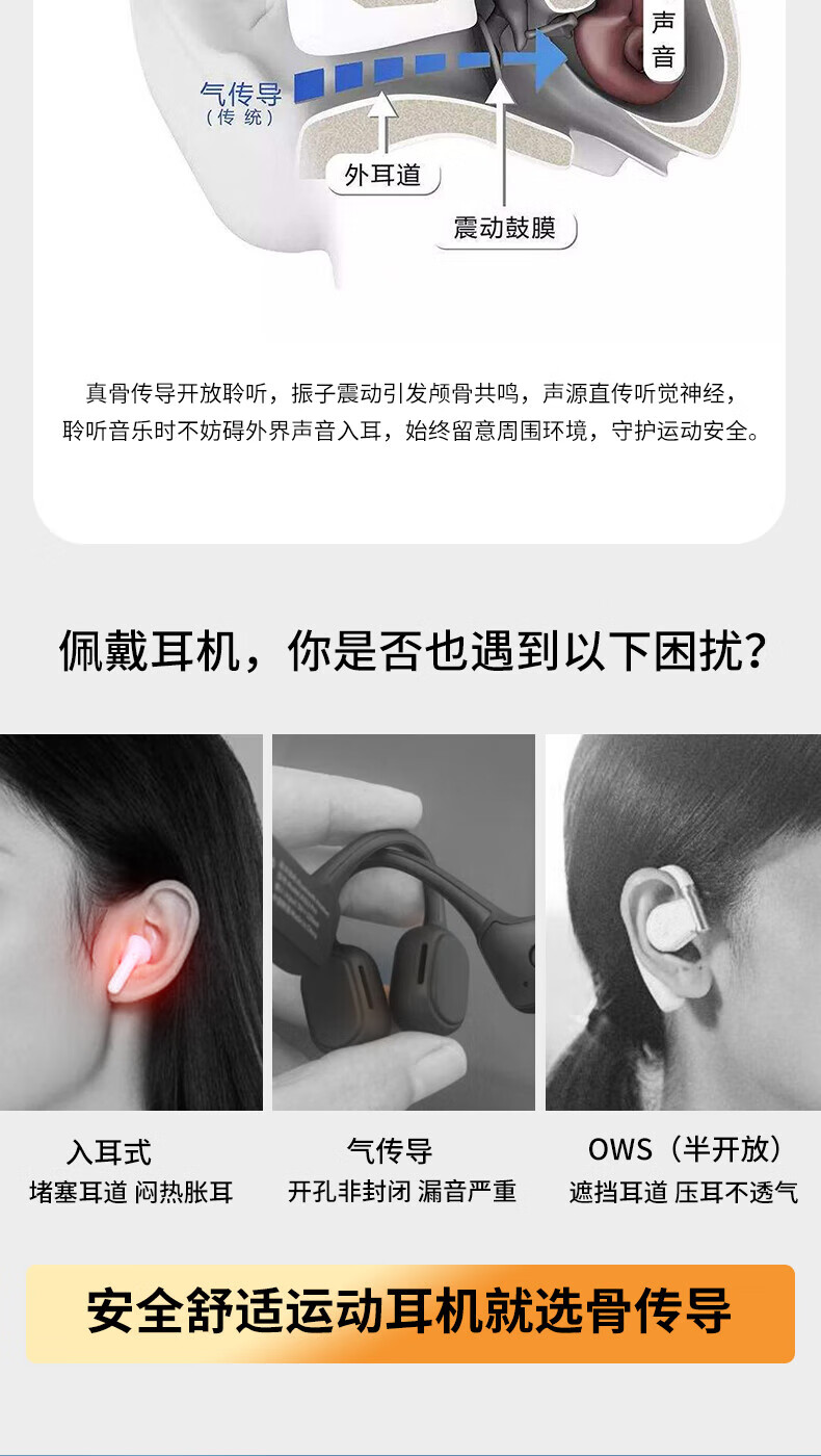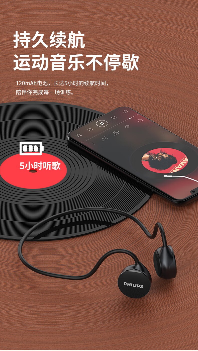 (巨邦佑)BJ+飞利浦 骨传导耳机 TAA1609 蓝牙无线开放式不入耳运动跑步户外骑行挂耳式长续航骨传感音乐