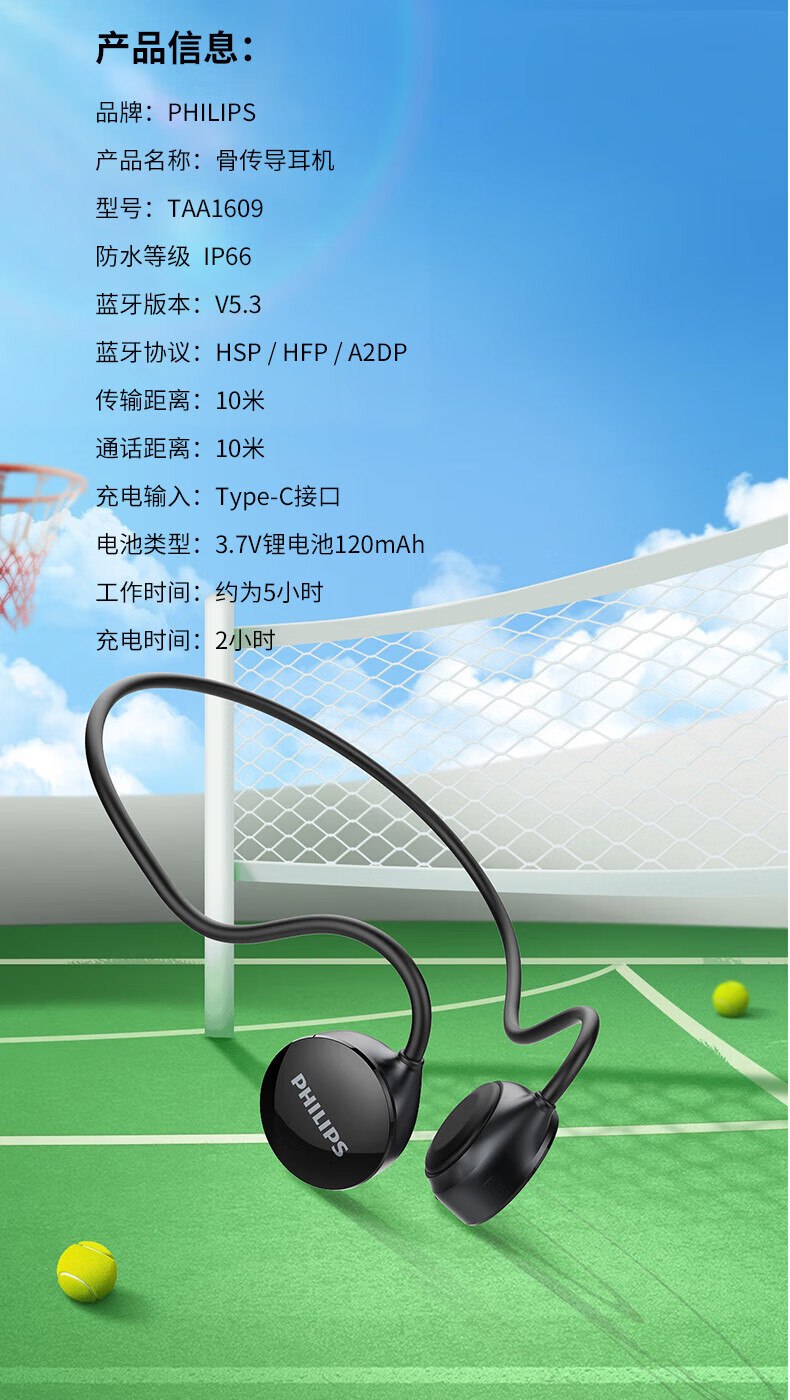 商品名称:(巨邦佑)BJ+飞利浦 骨传导耳机 TAA1609 蓝牙无线开放式不入耳运动跑步户外骑行挂耳式长续航骨传感音乐