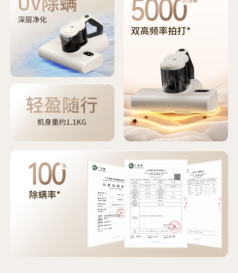 商品名称:(世星阳光)+米技(MIJI)家用除螨仪 【有线】MV-LP3004 UV除螨灭菌 螨虫无处遁形 除螨率可达100% 灭菌率可达99.9% 自动抬停设计