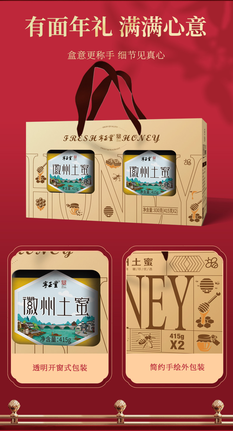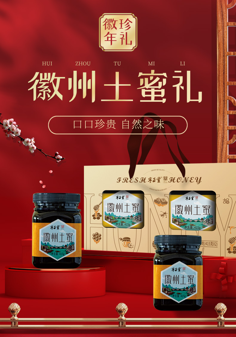 商品名称:(巨邦佑)T+ (yp)宁正丰年货礼盒(徽州土蜜礼盒)员工福利菌菇礼盒客送礼415g*2罐