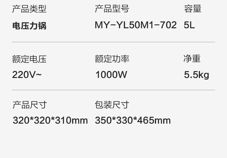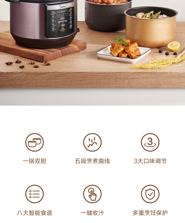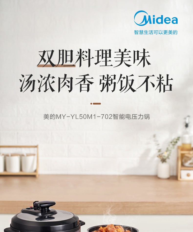商品名称:(世星阳光)美的 5L 压力锅 YL50M1-702 双胆料理美味 汤浓肉香 粥饭不粘