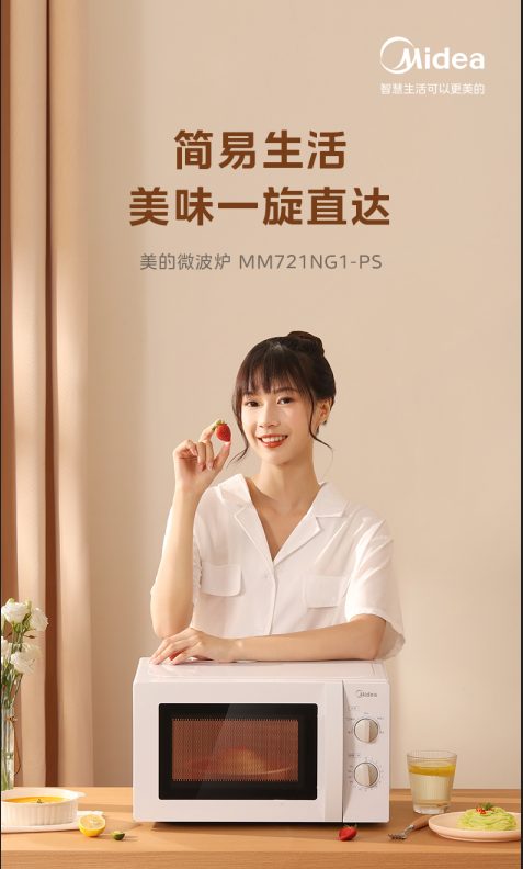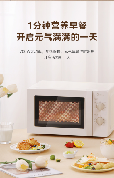 商品名称:(世星阳光)美的 微波炉 20L MM721NG1-PS 变频微波炉700W二级能效小型家用 360转盘加热 智能解冻 经典双旋钮五档火力