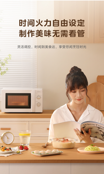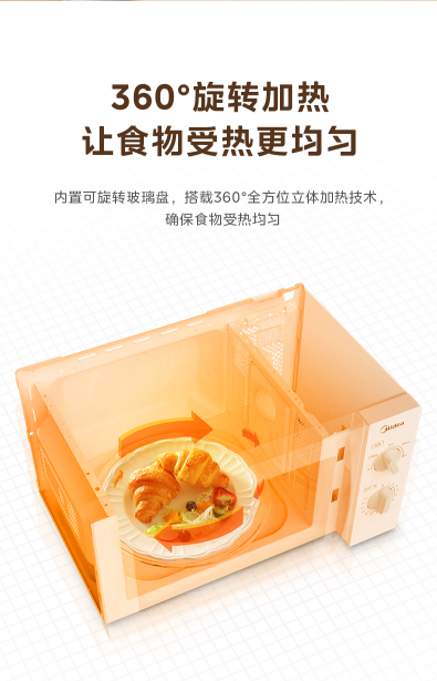 (世星阳光)美的 微波炉 20L MM721NG1-PS 变频微波炉700W二级能效小型家用 360转盘加热 智能解冻 经典双旋钮五档火力