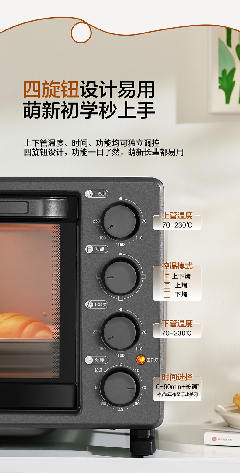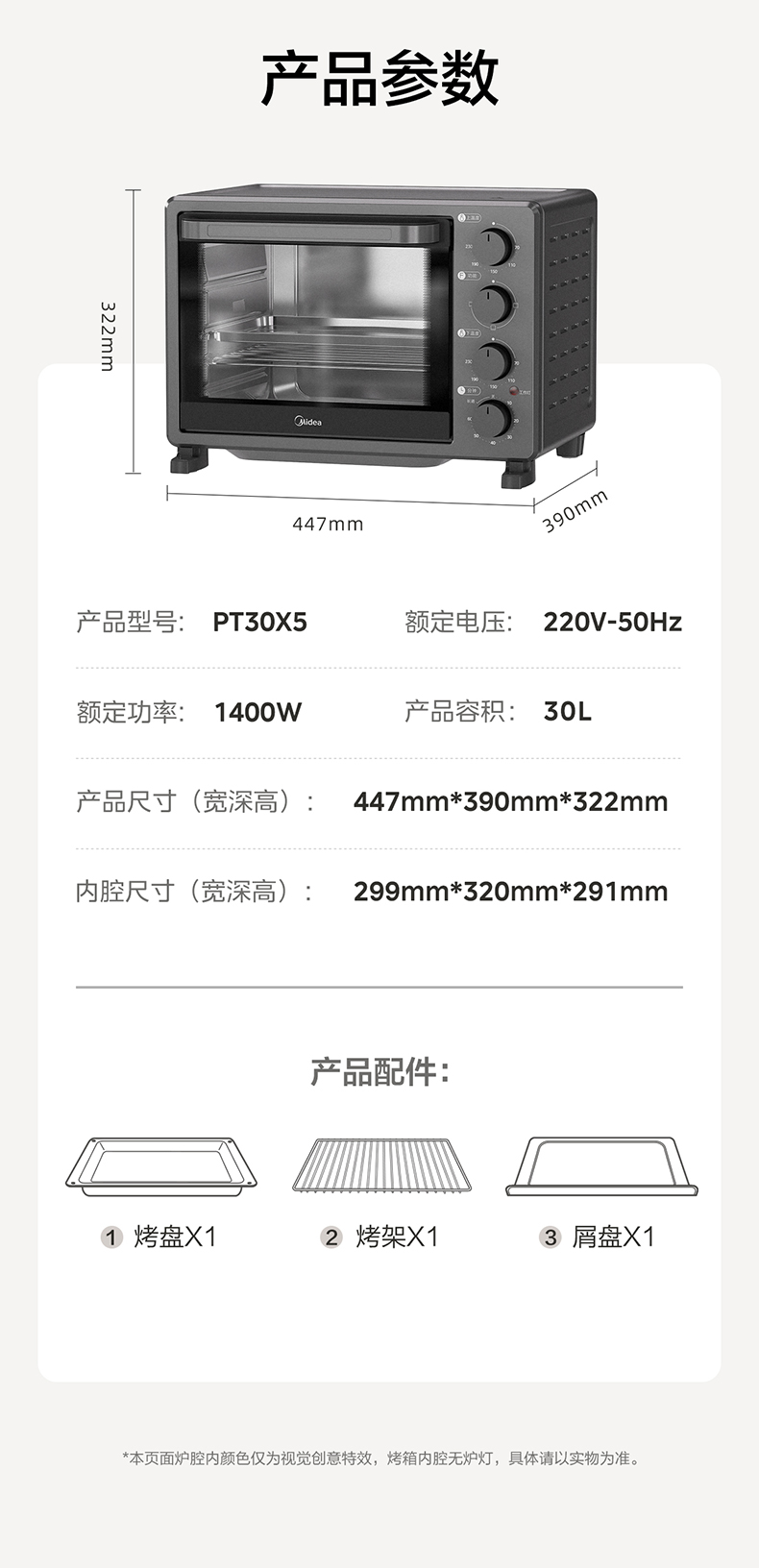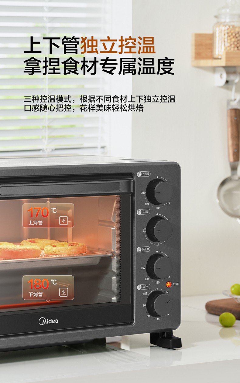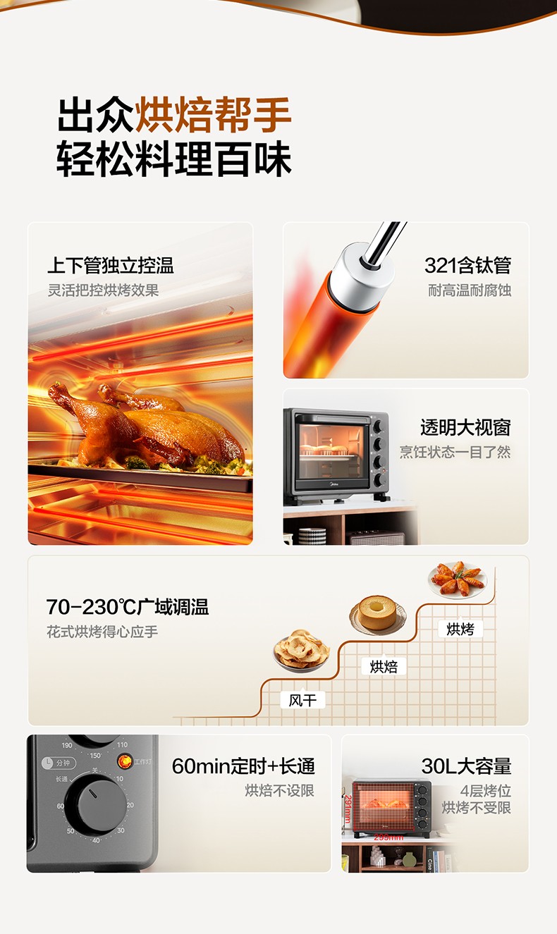 商品名称:(世星阳光)美的 电烤箱 30L PT30X5 上下独立控温 321含钛管 立体加热 温场均匀