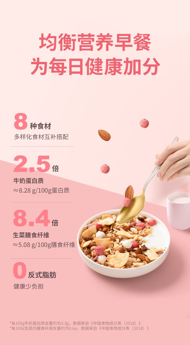(巨邦佑)T+ (yp)好麦多8臻优选奇亚籽坚果水果麦片202g 2袋装