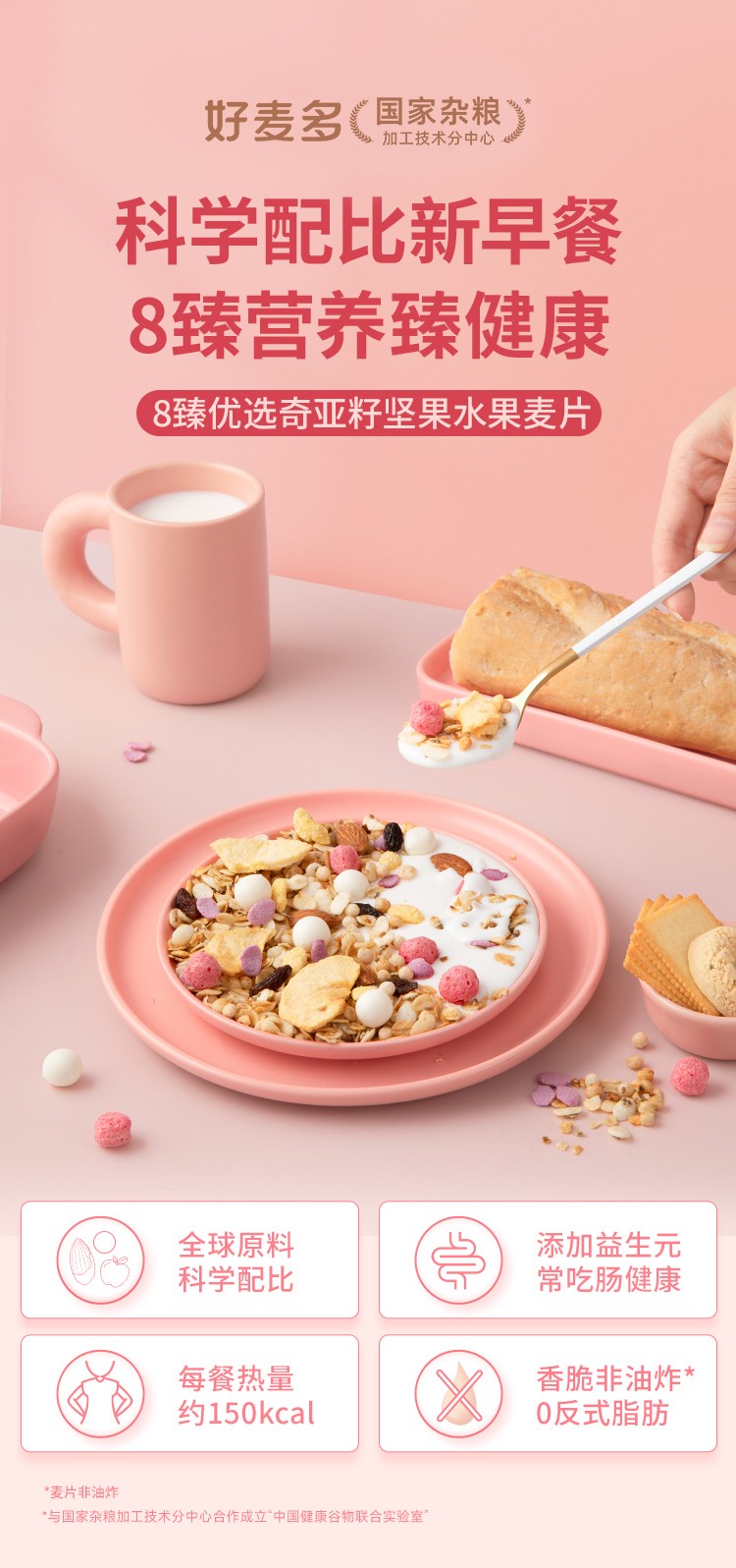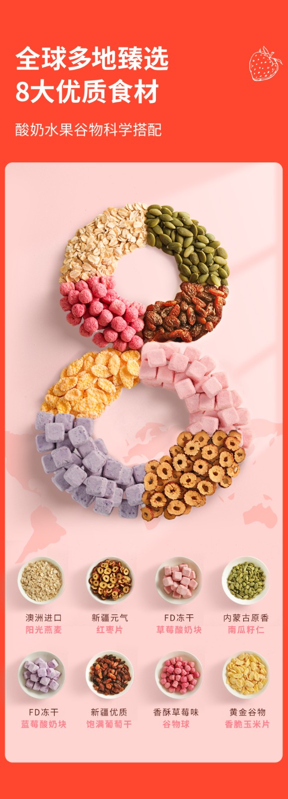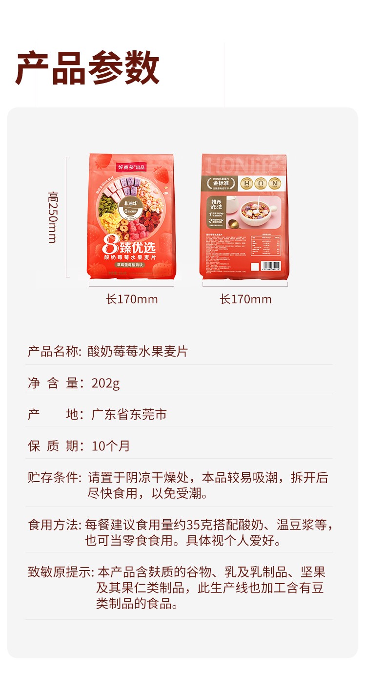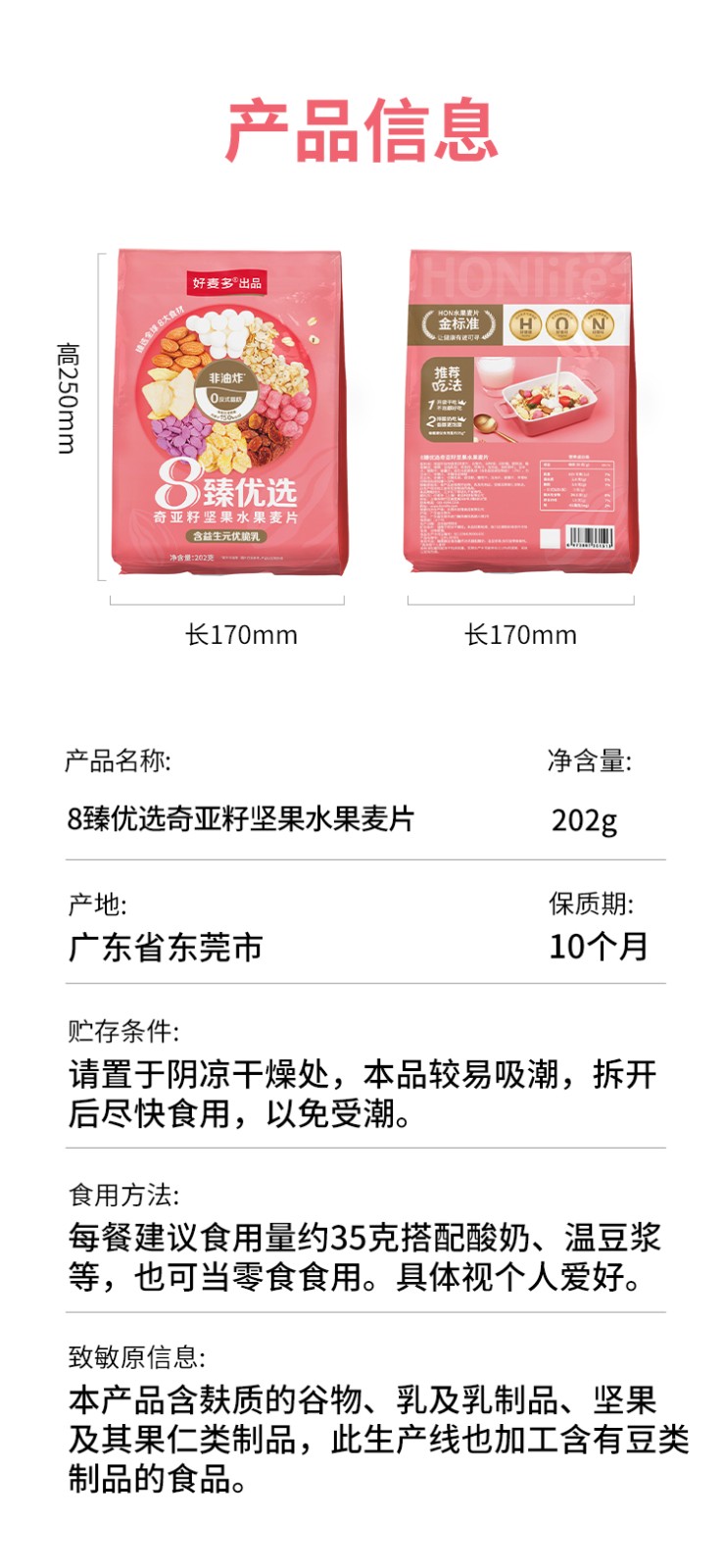 商品名称:(巨邦佑)T+ (yp)好麦多8臻优选奇亚籽坚果酸奶莓莓水果麦片 202g 各一袋