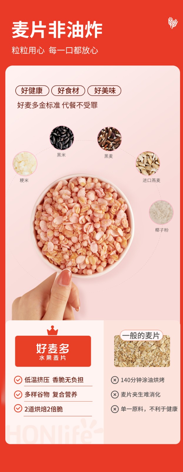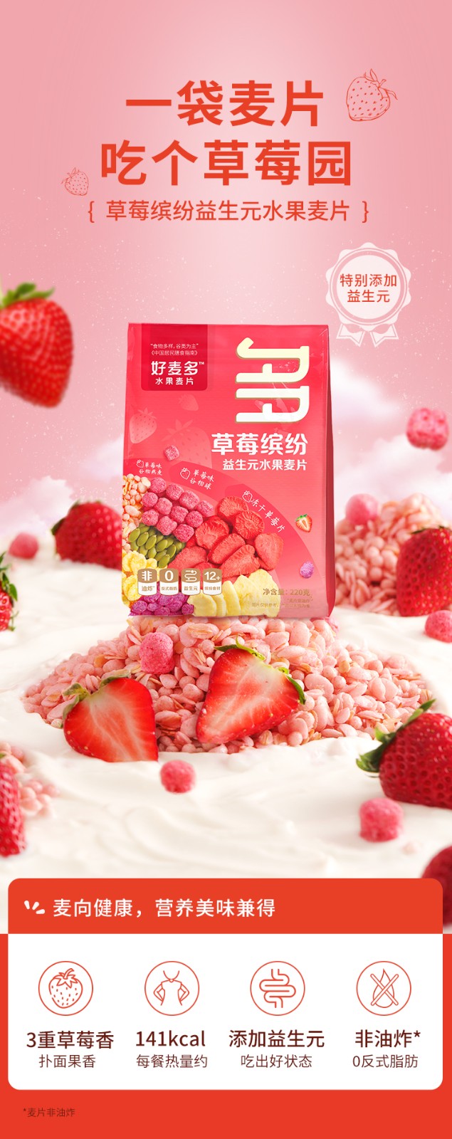 商品名称:(巨邦佑)T+ (yp)好麦多草莓缤纷益生元水果麦片220g 2袋装