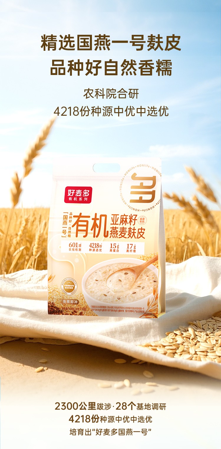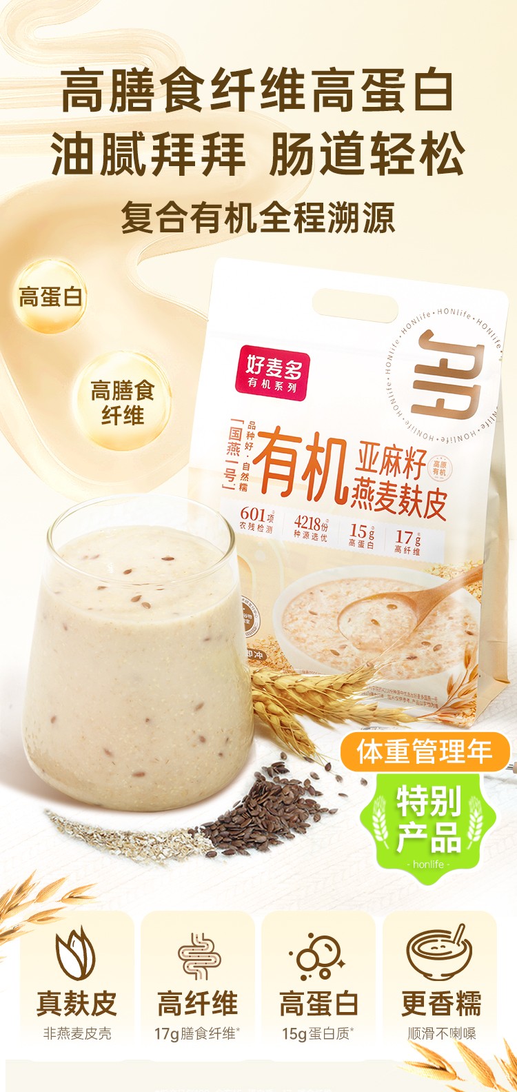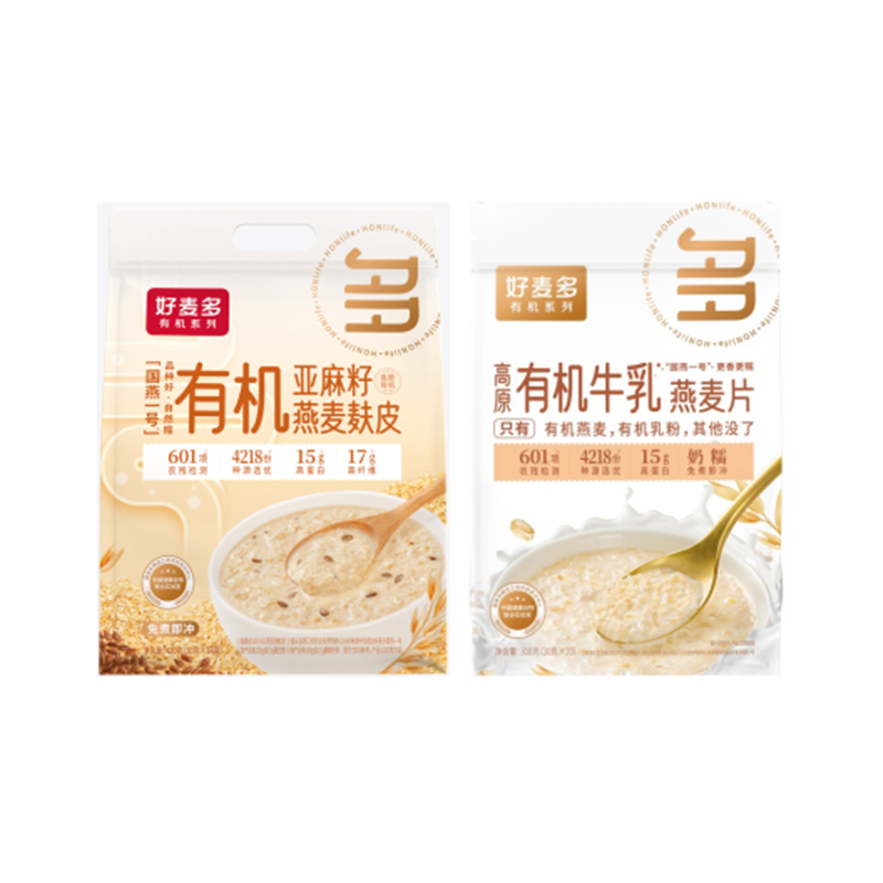 (巨邦佑)T+ (yp)好麦多有机亚麻籽燕麦麸皮420g*1 高原有机牛乳300g*1 共2袋
