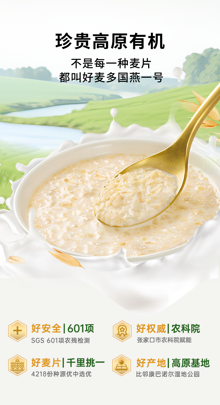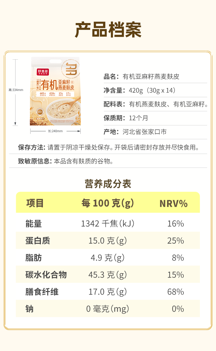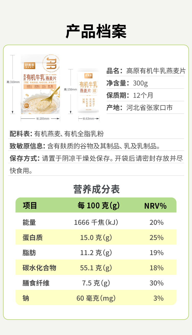 商品名称:(巨邦佑)T+ (yp)好麦多有机亚麻籽燕麦麸皮420g*1 高原有机牛乳300g*1 共2袋