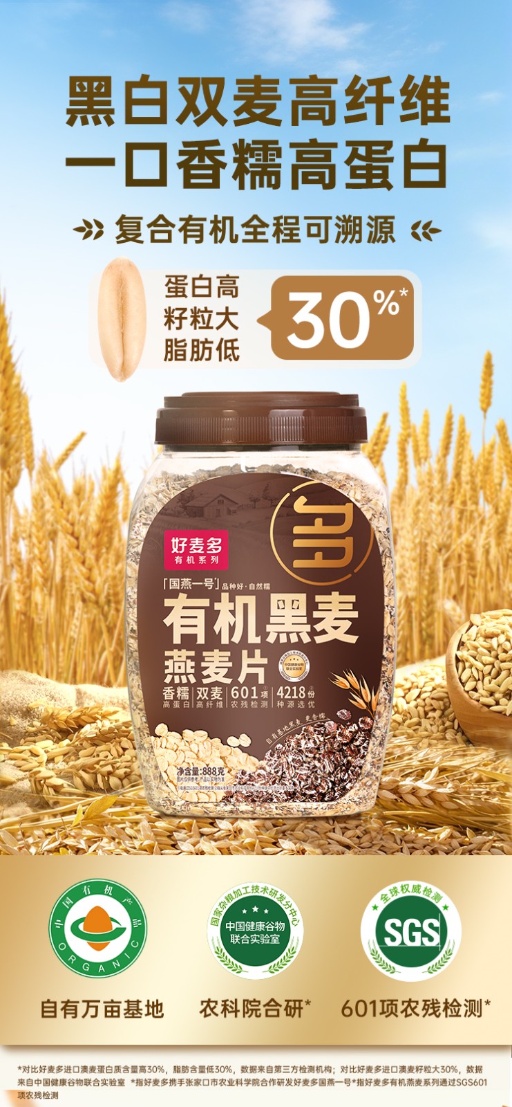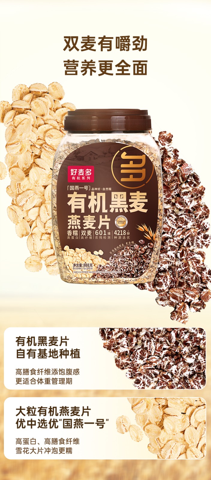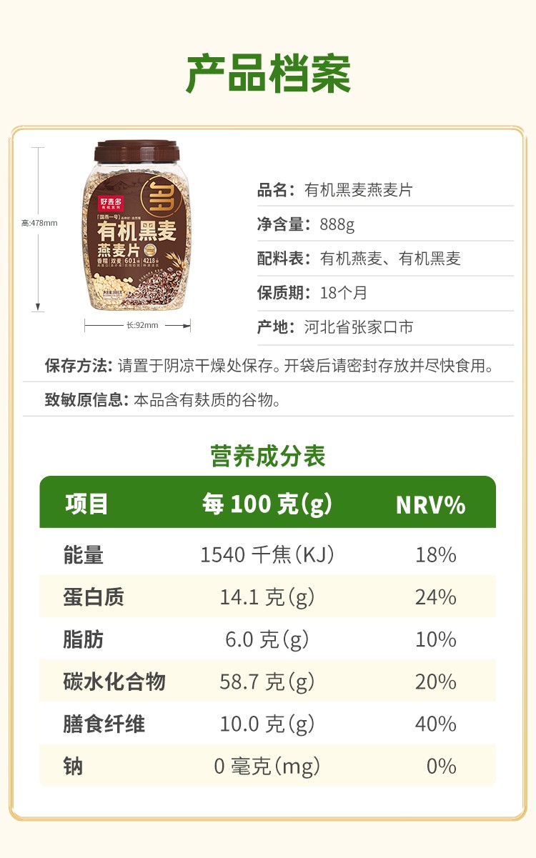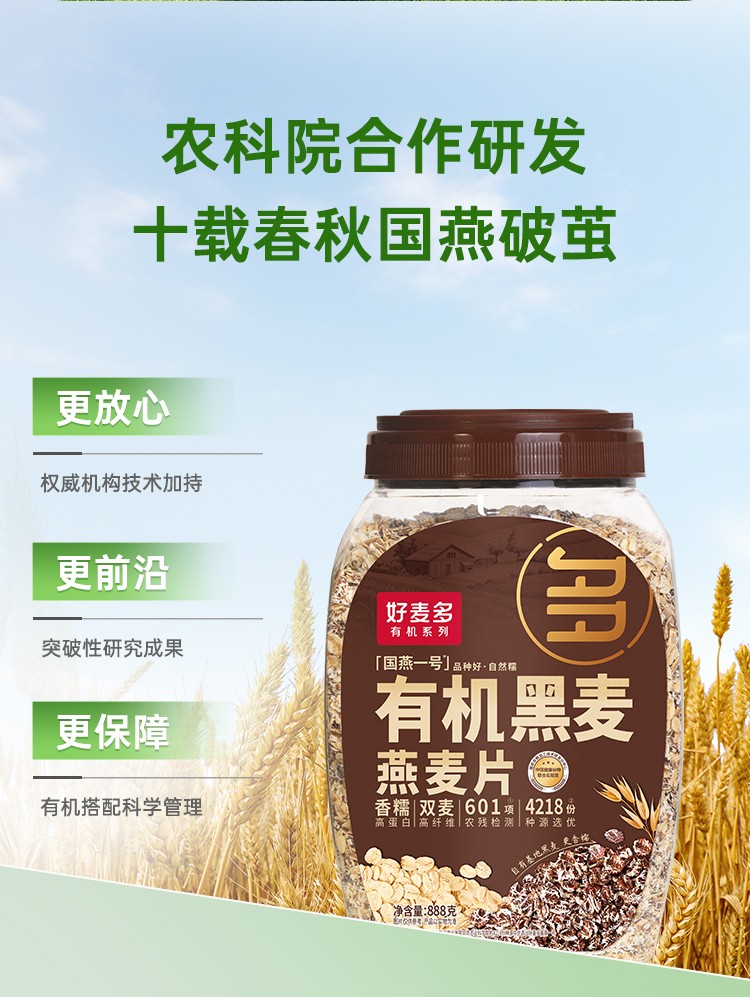 商品名称:(巨邦佑)T+ (yp)好麦多有机黑麦燕麦片888g免煮即食营养早餐健身轻食谷物0无添加蔗糖