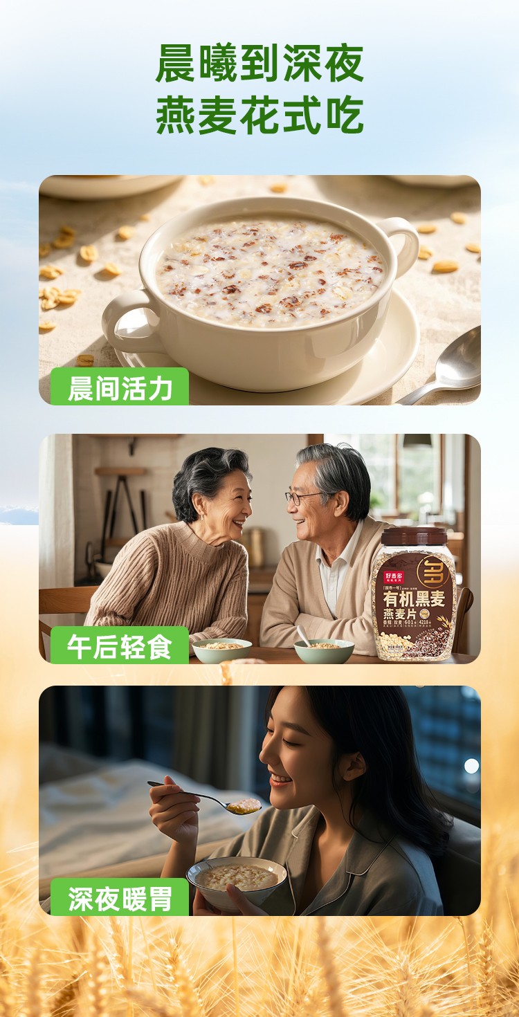 (巨邦佑)T+ (yp)好麦多有机黑麦燕麦片888g免煮即食营养早餐健身轻食谷物0无添加蔗糖