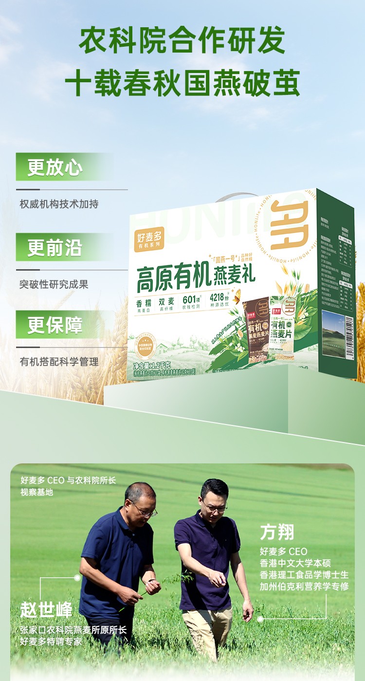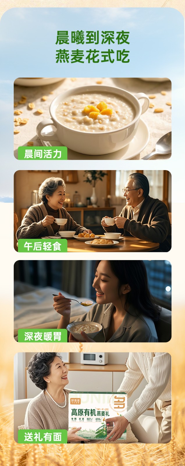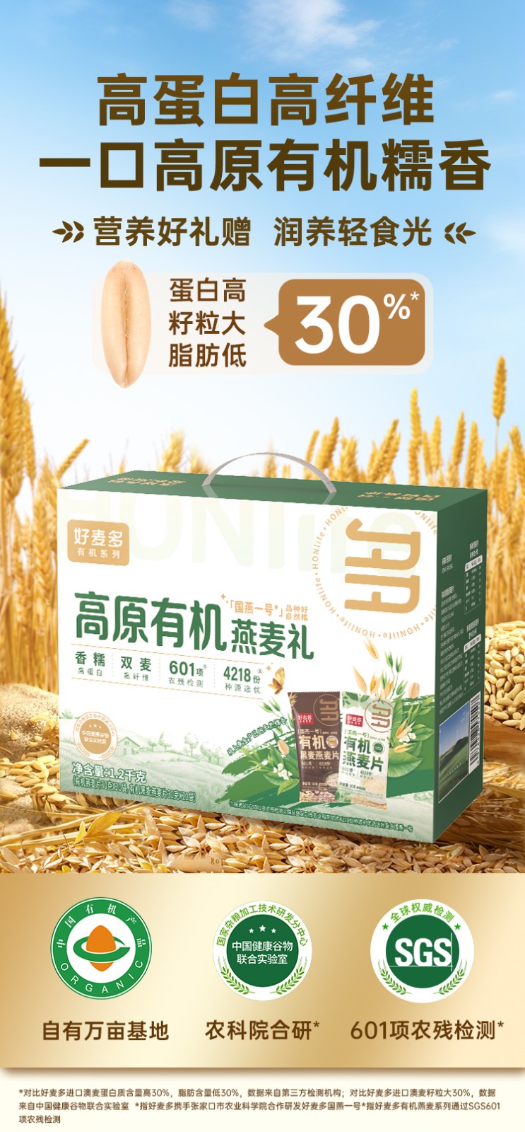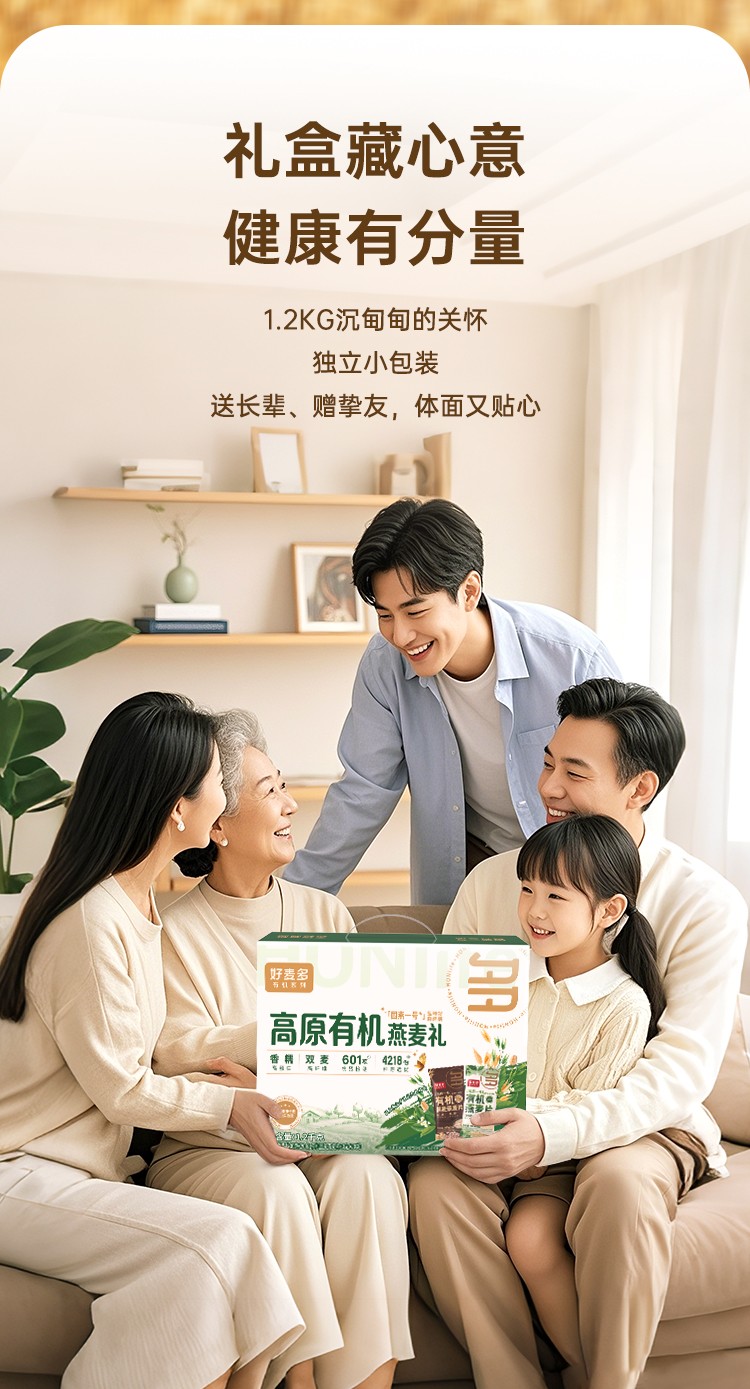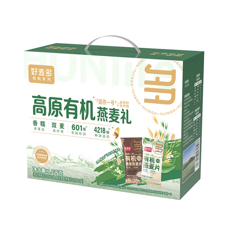 (巨邦佑)T+ (yp)好麦多高铁燕麦人参猴头菇粉营养早餐代餐即食有机礼盒送长辈老人过节 高原有机燕麦礼1.2kg