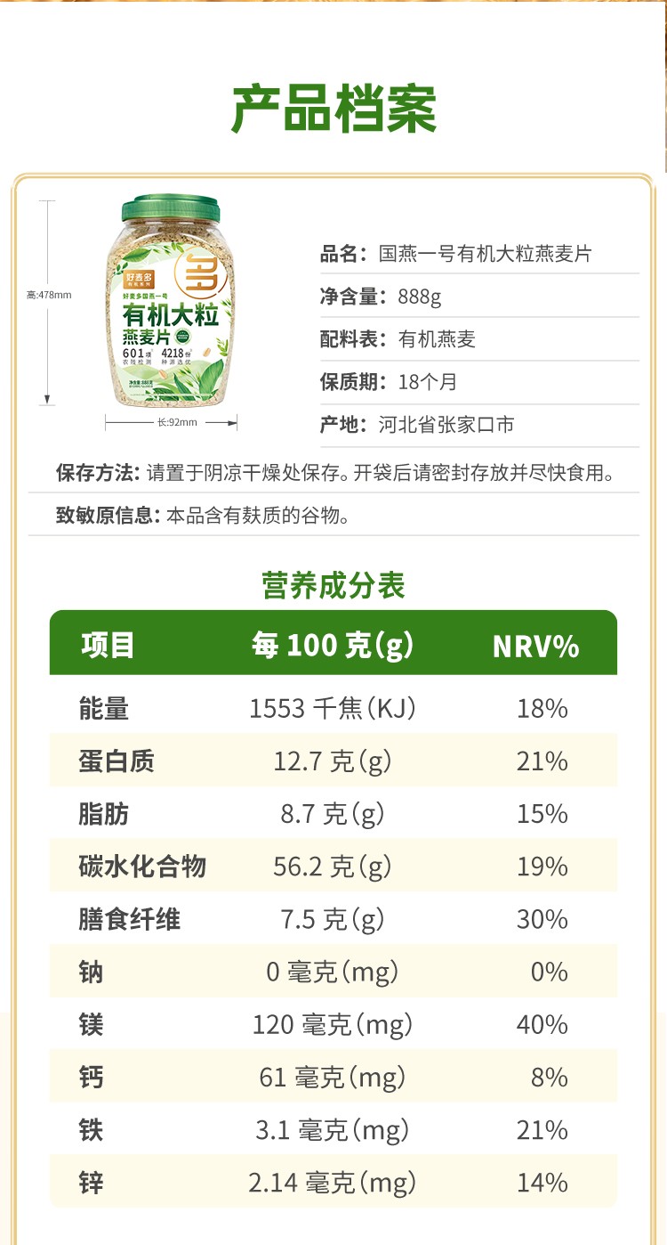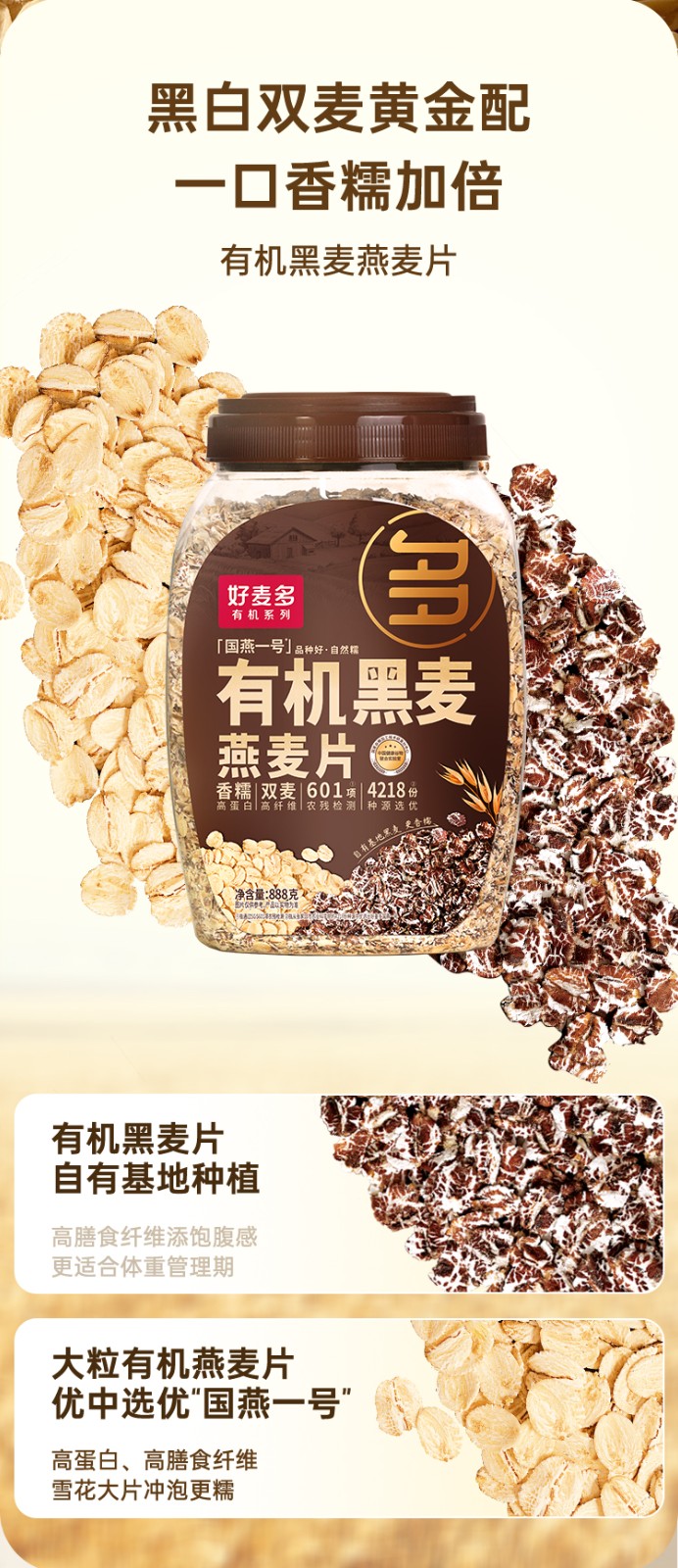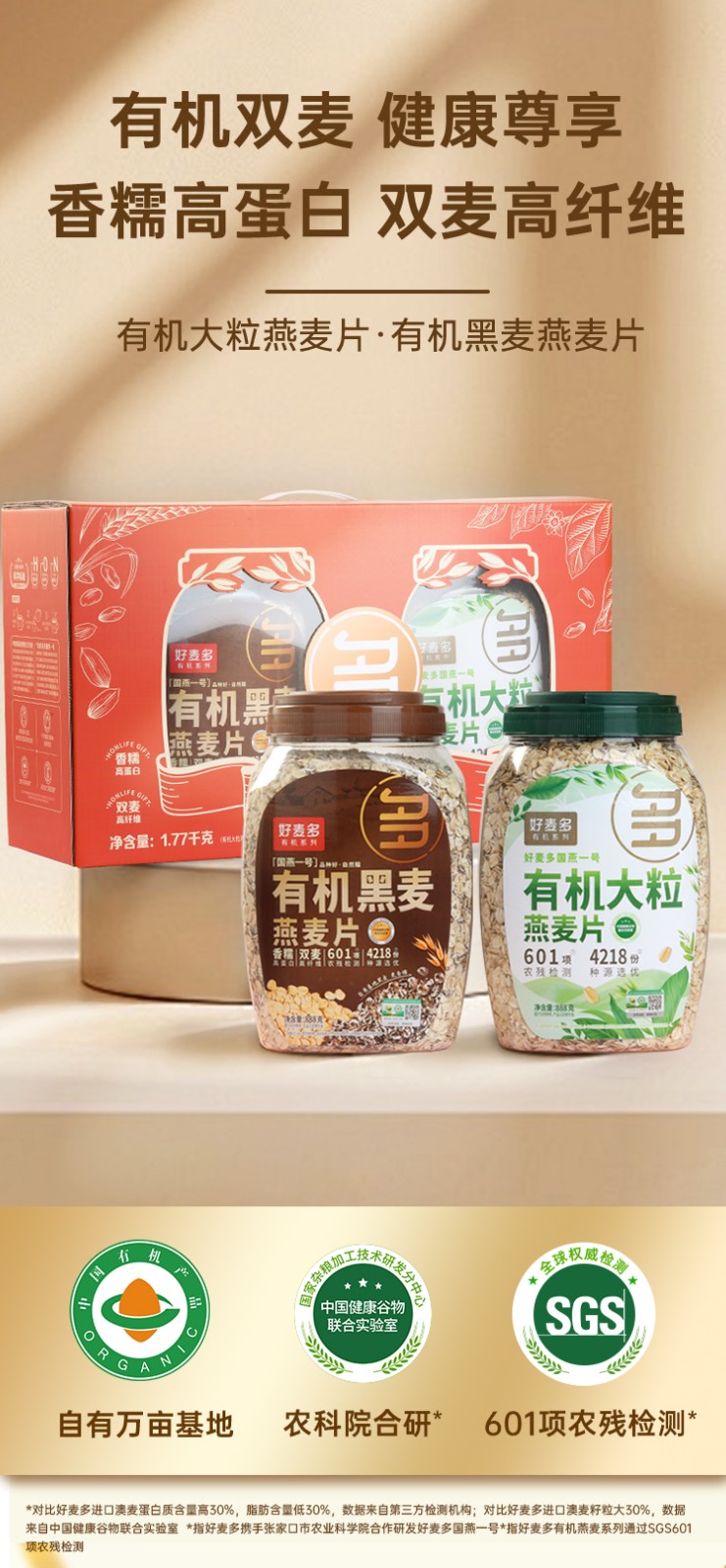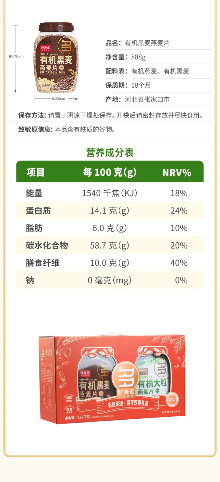 商品名称:(巨邦佑)T+ (yp)好麦多农科院有机八珍即食燕麦片轻食营养无0添加蔗糖中老年人早餐送礼 【送礼大桶装】有机888尊享双麦礼盒 1.77kg