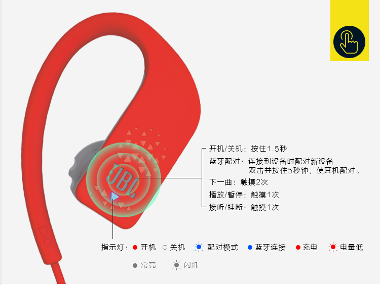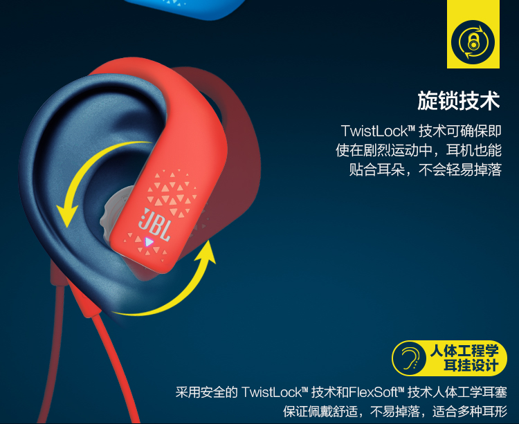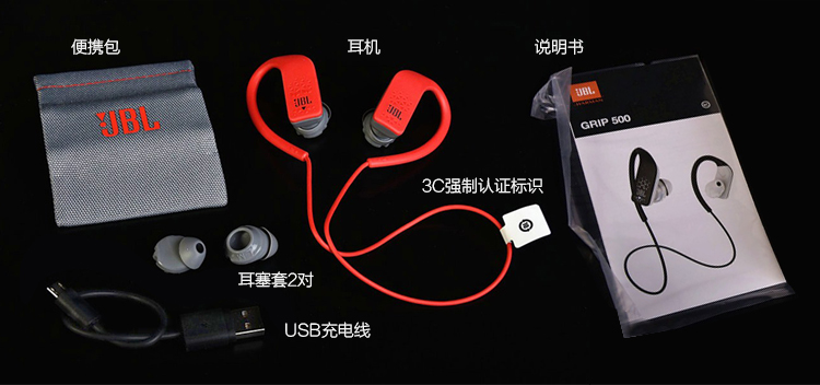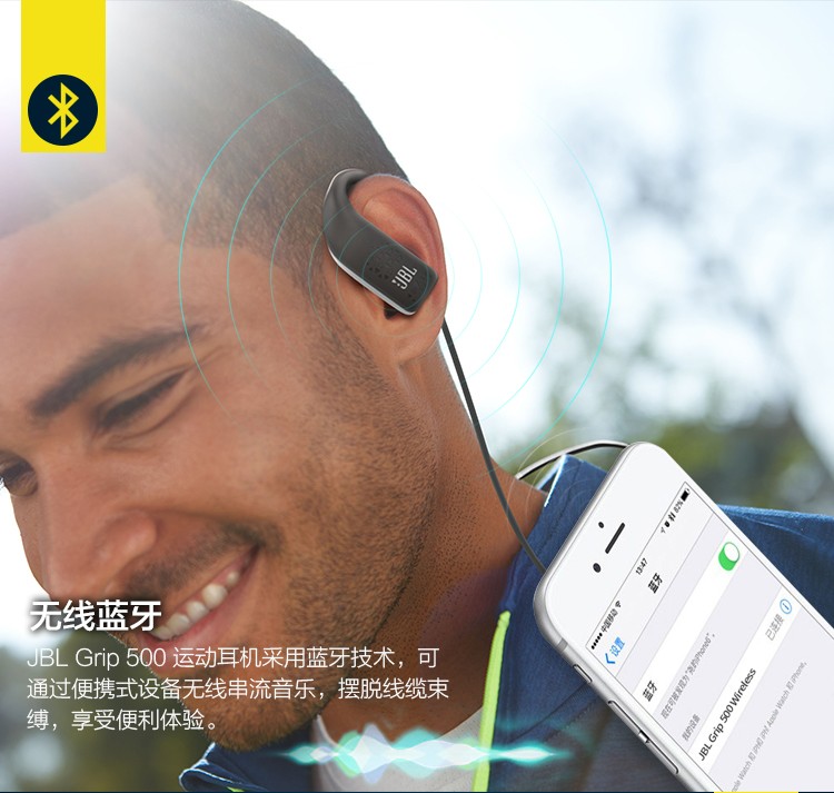 商品名称:(世星阳光)JBL Grip500 半入耳式无线蓝牙运动耳机 8小时强劲续航 防水防汗