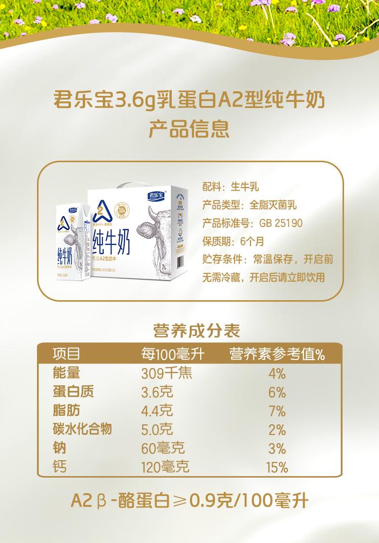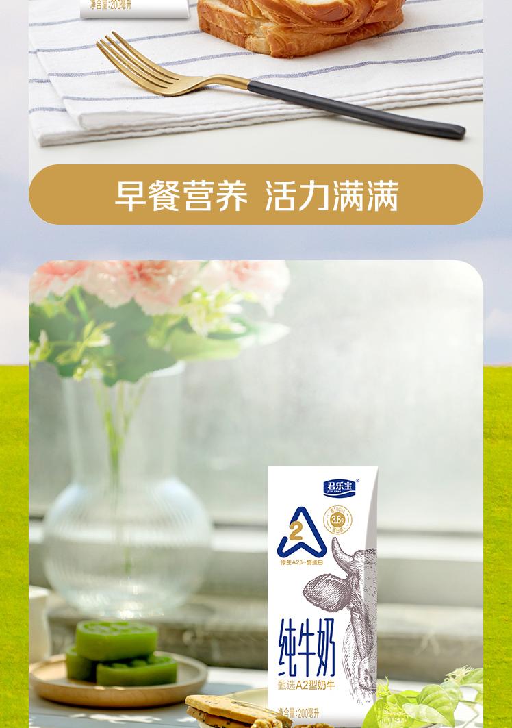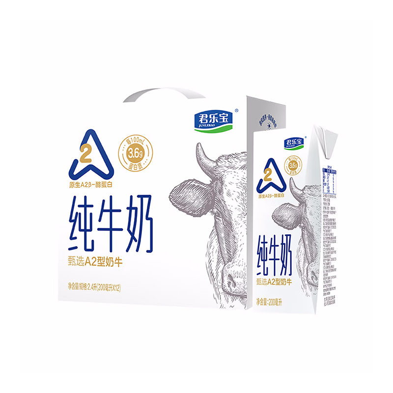 商品名称:(巨邦佑)T+ (yp)君乐宝A2酪蛋白纯牛奶200ml*12礼盒装 优质奶源 营养早餐