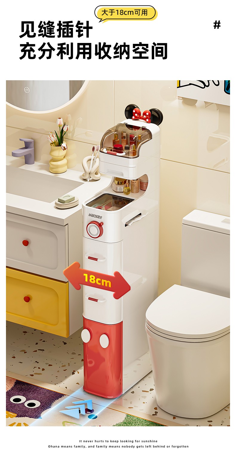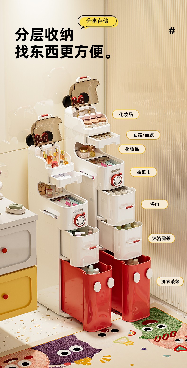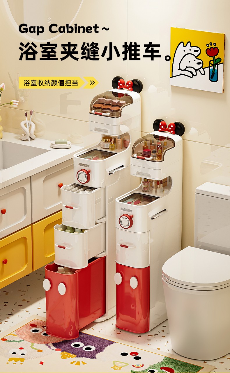 (巨邦佑)BJ+迪士尼夹缝收纳柜 浴室夹缝小推车百搭家居超大容量加厚材质超强承重