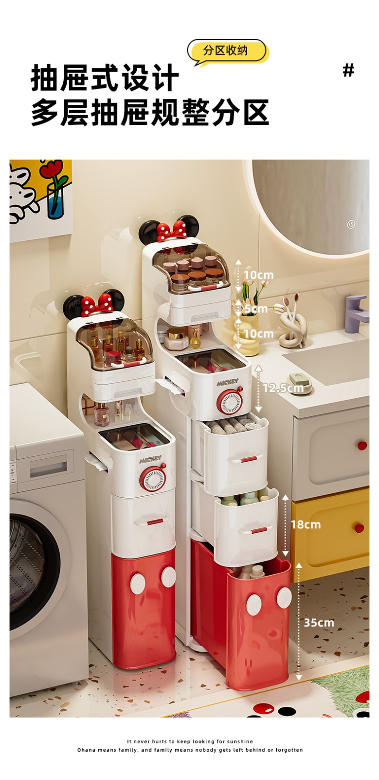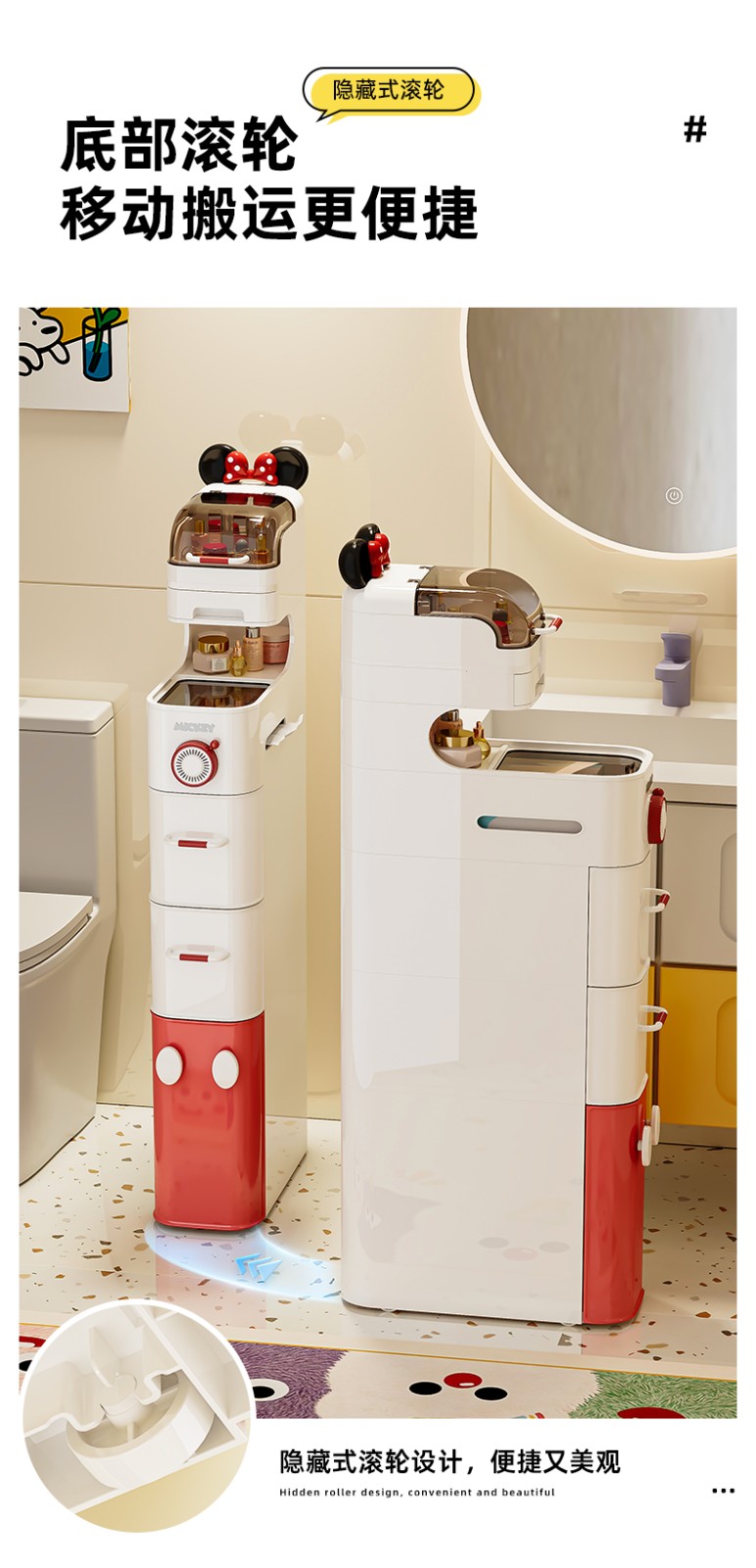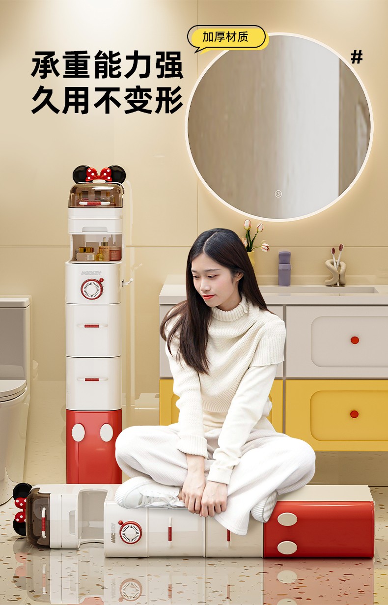 (巨邦佑)BJ+迪士尼夹缝收纳柜 浴室夹缝小推车百搭家居超大容量加厚材质超强承重