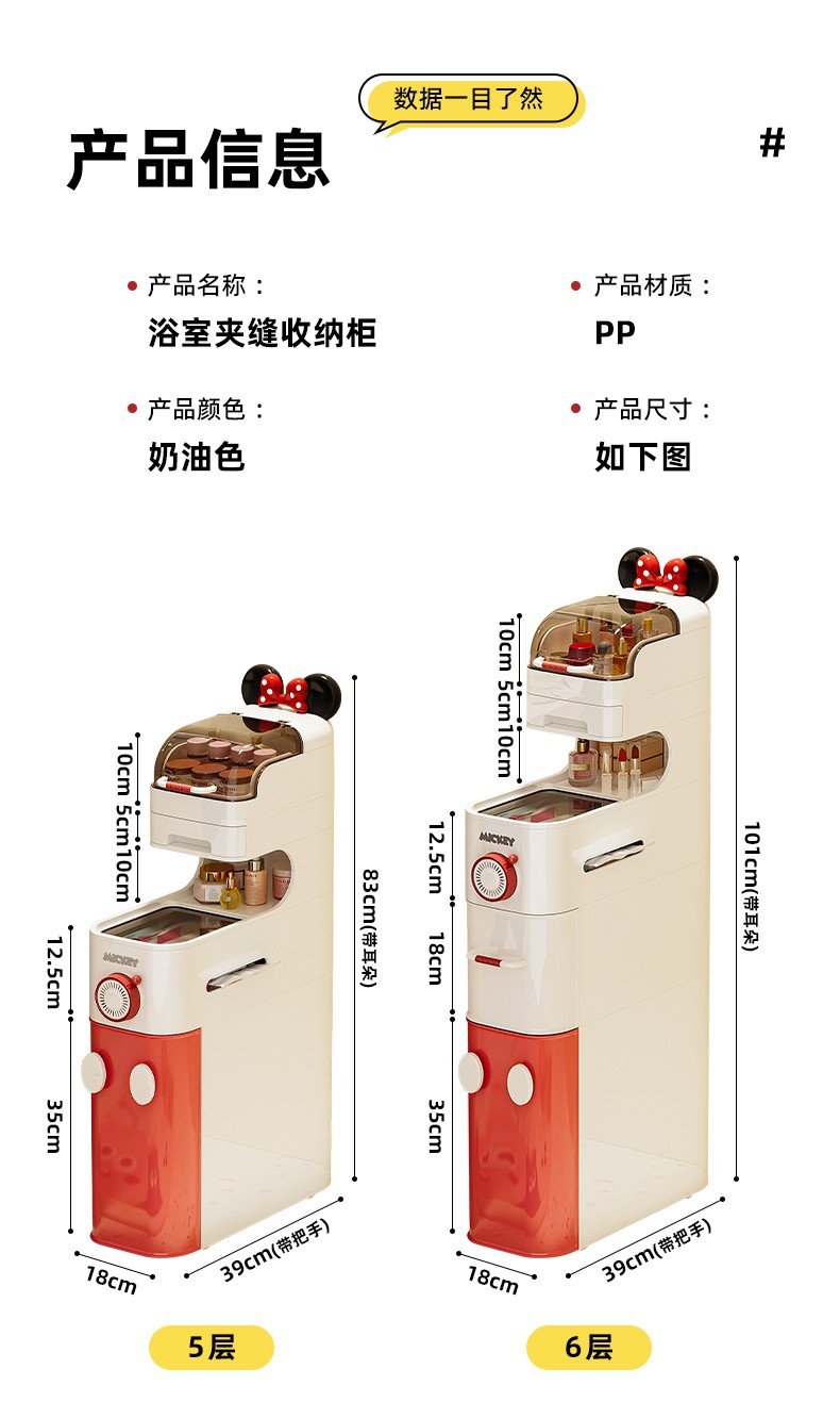 商品名称:(巨邦佑)BJ+迪士尼夹缝收纳柜 浴室夹缝小推车百搭家居超大容量加厚材质超强承重