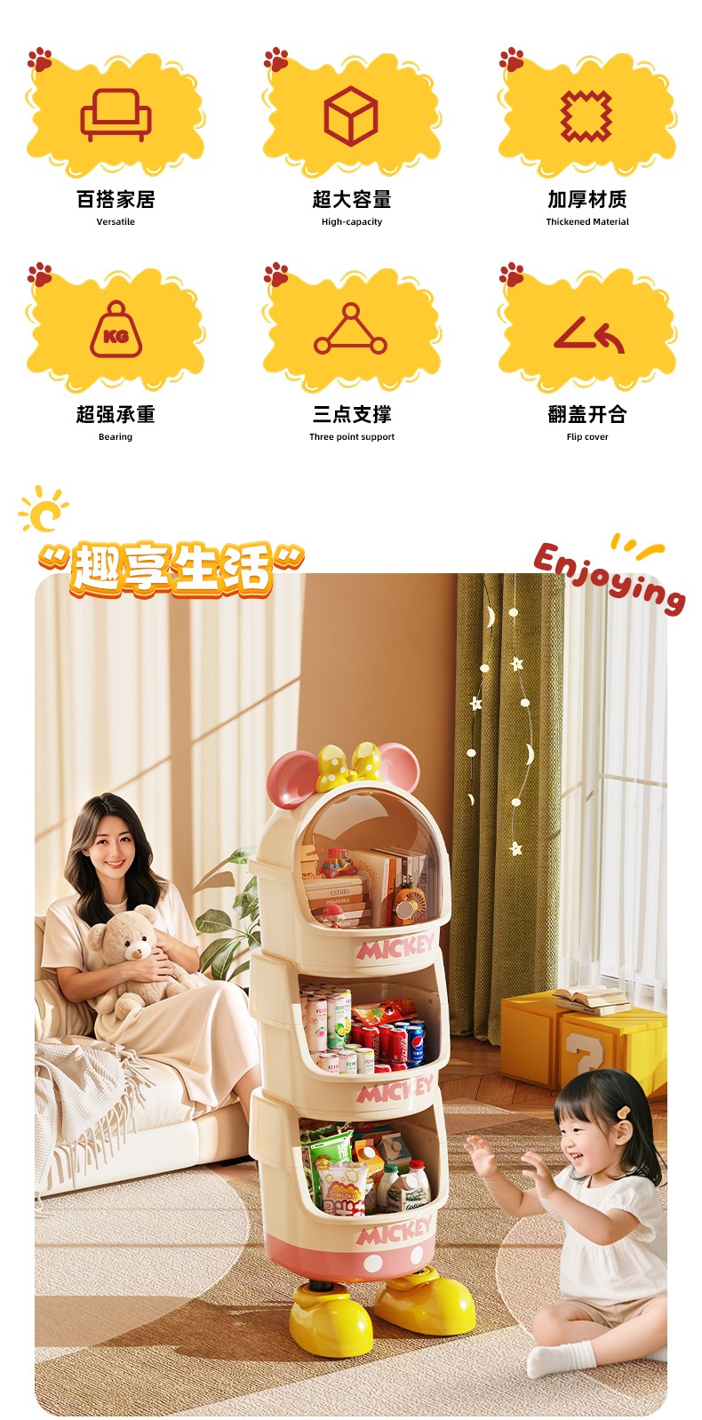 (巨邦佑)BJ+迪士尼收纳架 萌趣收纳置物架百搭家居超大容量加厚材质超强承重三点支撑