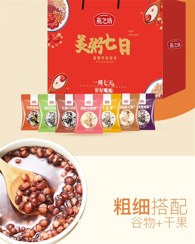商品名称:(巨邦佑)BJ+燕之坊美粥七日 1.05kg 礼盒 每日一粥营养搭配粗粮代餐团购伴手礼