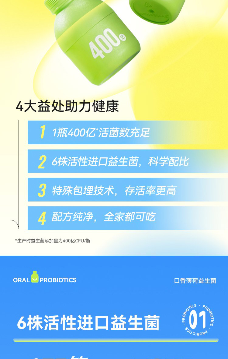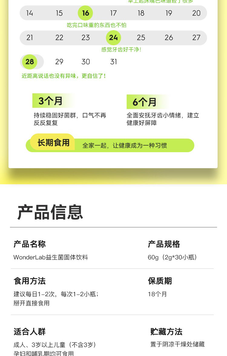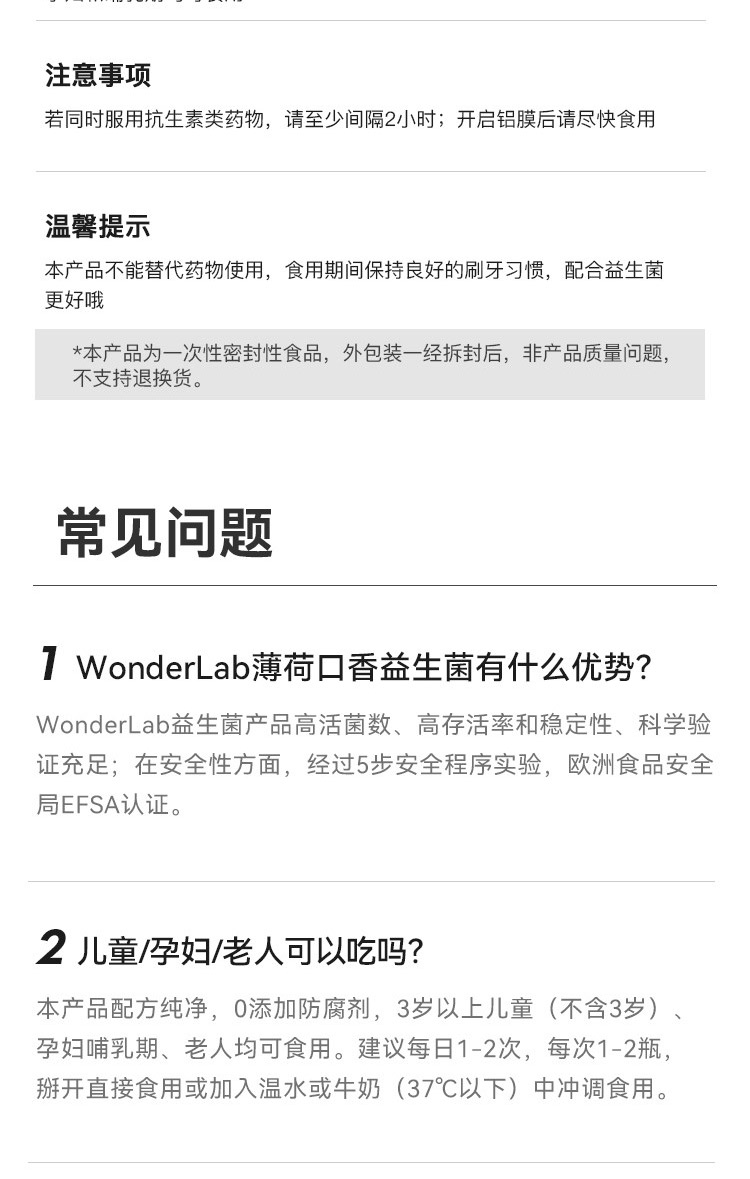 商品名称:(超运·禾贸)WonderLab口腔益生菌(30瓶装) 口腔即食益生菌 400亿CFU活菌 成人儿童孕妇口腔益生元益生菌