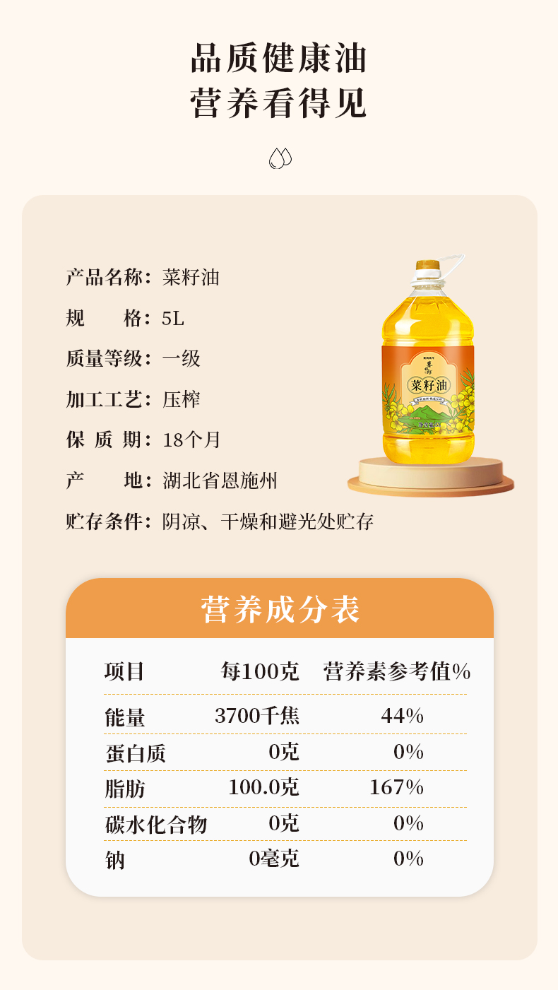 商品名称:(自营2)陇间柒月 ·暮秋坊菜籽油5L