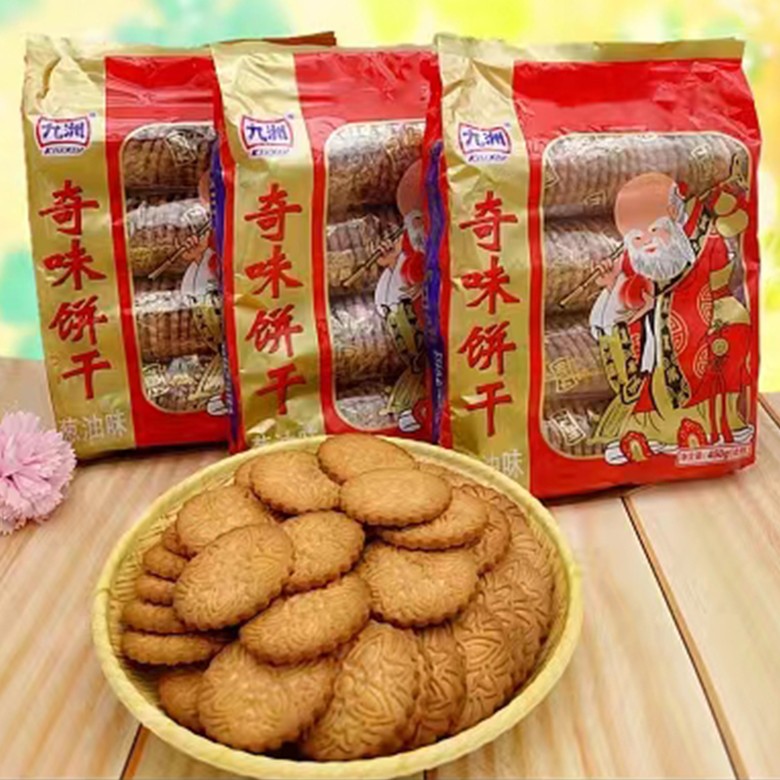 商品名称:(中百)九洲奇味葱油饼干450g*2袋,寿星老头葱油奇味饼干